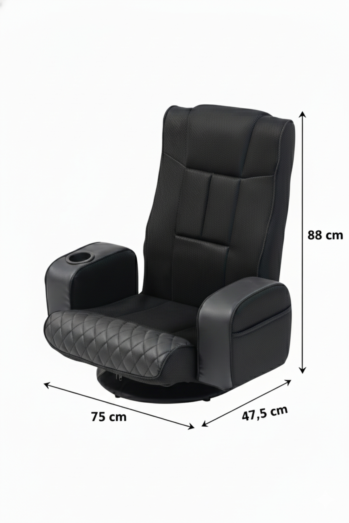 Zwarte gamestoel vloerstoel – compact, draaibaar en verstelbaar