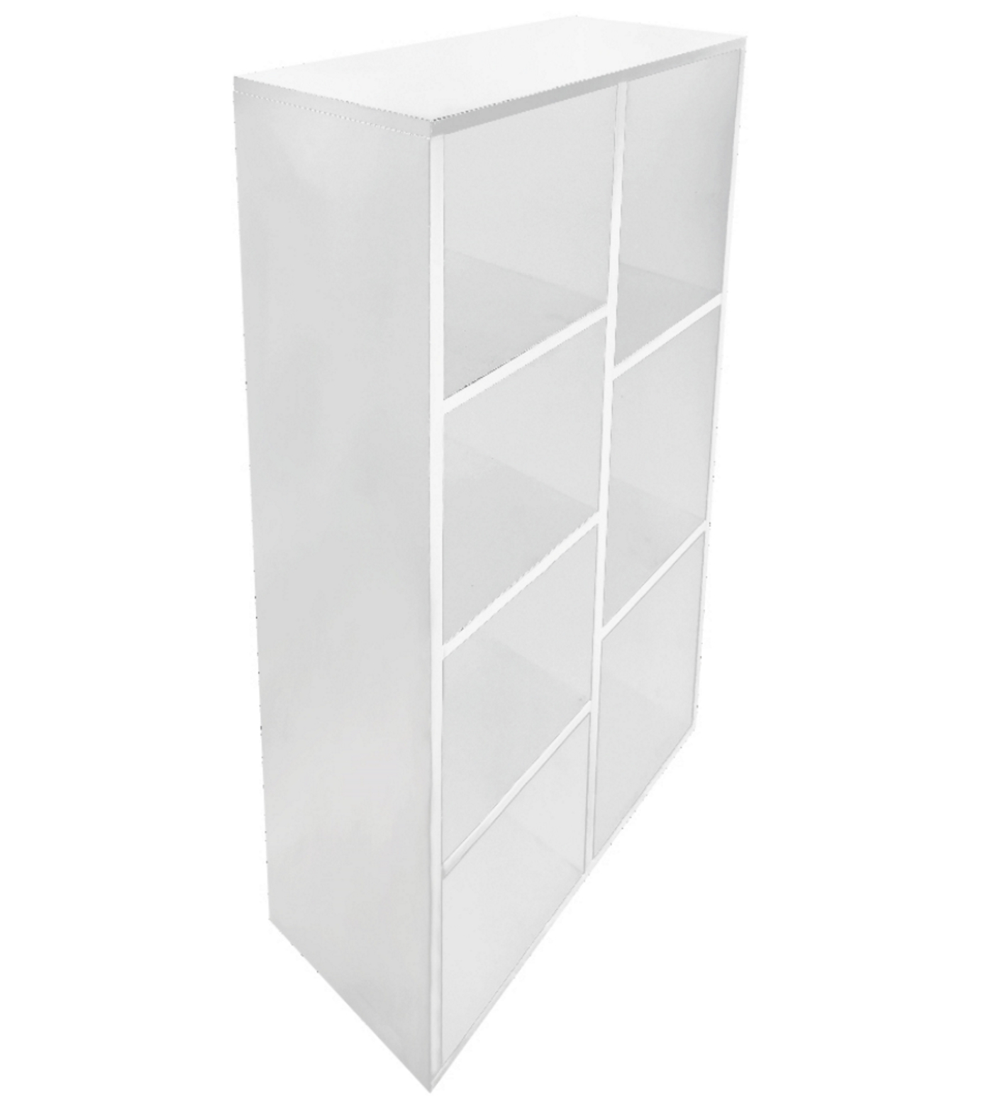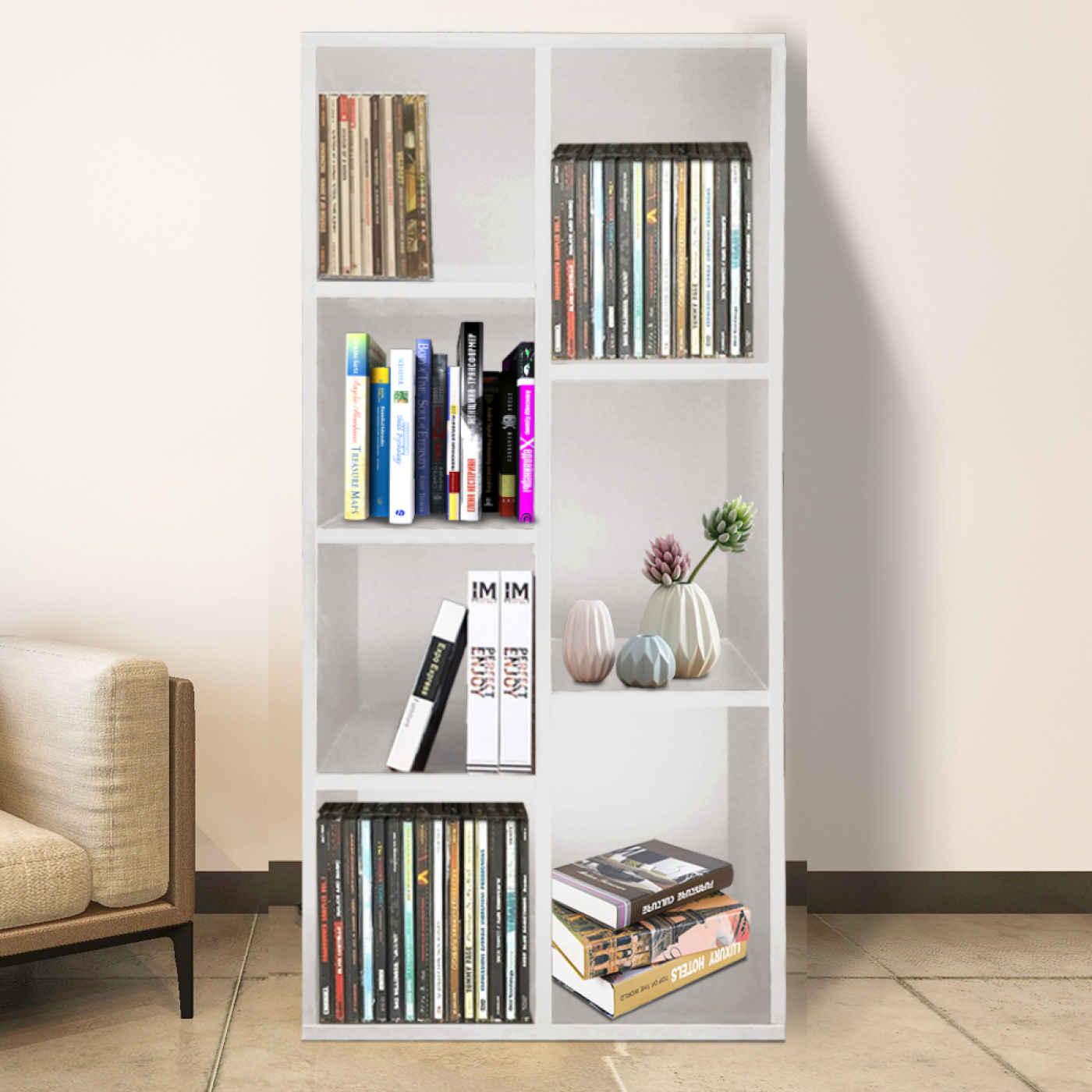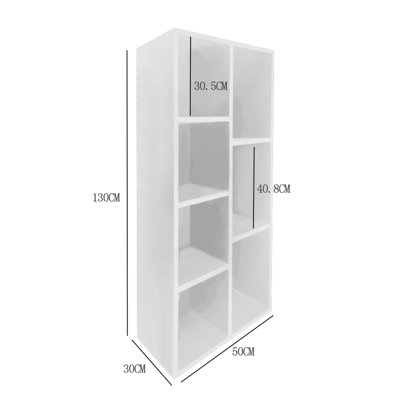 Een witte open boekenkast met 7 open vakken voor het opbergen en tonen van bijvoorbeeld verzamelingen boeken of cd dvd platen collectie maar ook andere woonaccessoires items kunnen mooi in dit meubel worden geplaatst. Deze wandkast open vakkenkast heeft egplanken waardoor er 7 open vakken ontstaan aan de rechterkant 3 vakken van 41 cm hoog en links 4 vakken van 30.5 cm hoog. Deze opbergkast is natuurlijk ook universeel te gebruiken in uw kantoor werkkamer slaapkamer of woonkamer. Produktafmetingen: hoogte 130 cm x breed 50 cm x diepte 30 cm. Kleur: wit. De levering is in delen incl. montagehandleiding en montagemateriaal.