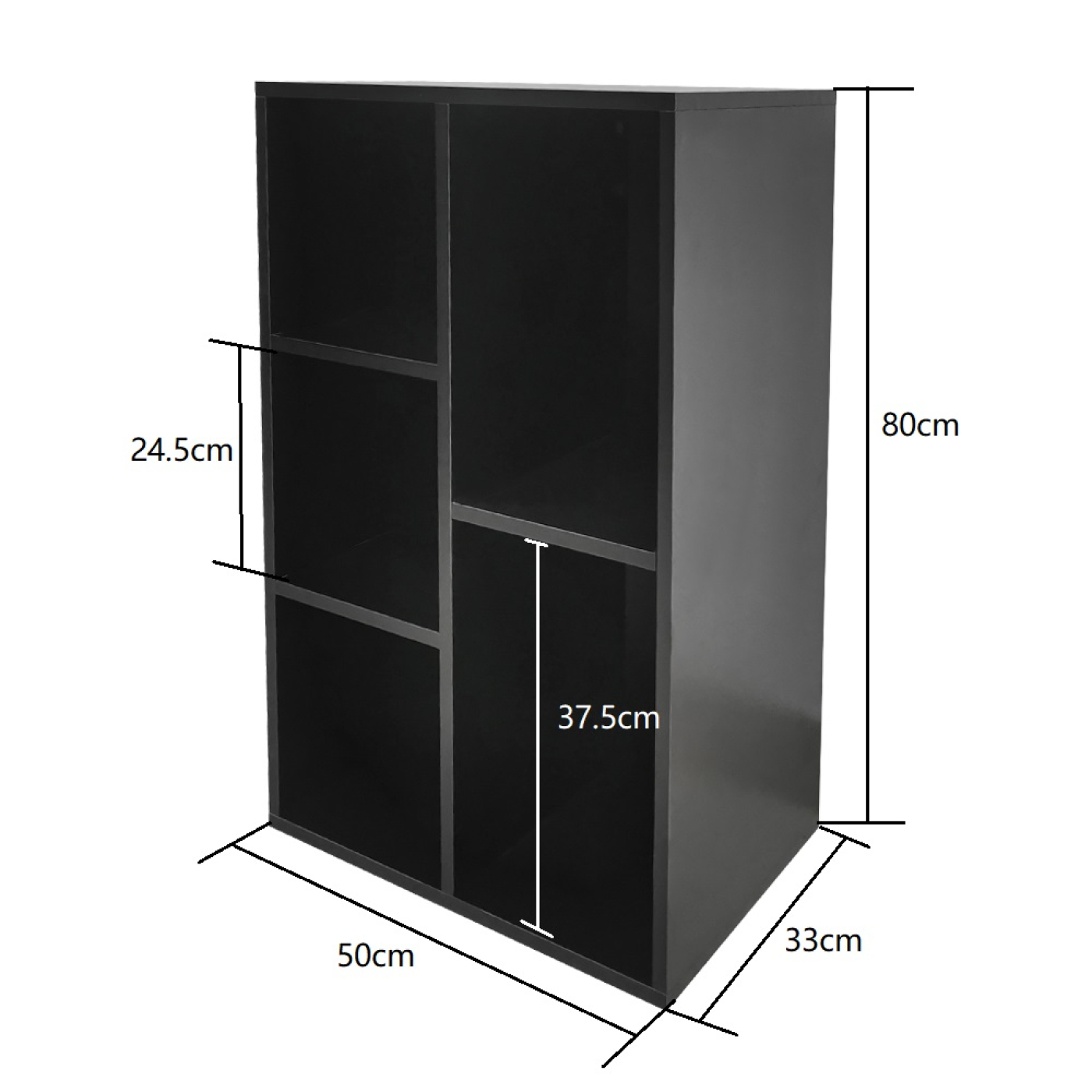Een stevige en simpele maar multifunctioneel te gebruiken houten zwarte kast met 5 open vakken voor het opbergen en tonen van bijvoorbeeld uw LP vinyl collectie CD DVD verzameling of boeken tijdschriften maar ook leuk voor andere woonaccessoires items. Deze wandkast open vakkenkast heeft houten legplanken waardoor er 5 vakken ontstaan. de twee vakken aan de rechterkant zijn 37.5 cm hoog en geschikt voor het opbergen van uw LP vinyl platen, de rechtervakken zijn 24.5 cm hoog en geschikt voor het opbergen van uw CD of DVD collectie. Deze opbergkast is natuurlijk ook universeel te gebruiken in uw kantoor werkkamer slaapkamer of woonkamer. De levering is in delen incl. montagehandleiding en montagemateriaal. Buiten afmetingen van dit meubel zijn: hoogte 80 cm x breed 50 cm x diepte 33 cm. Kleur: zwart. Ook verkrijgbaar in andere kleuren en afmetingen, zie onze andere advertenties.