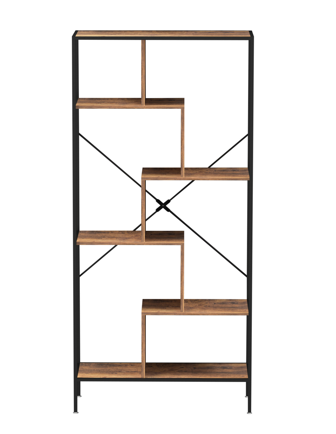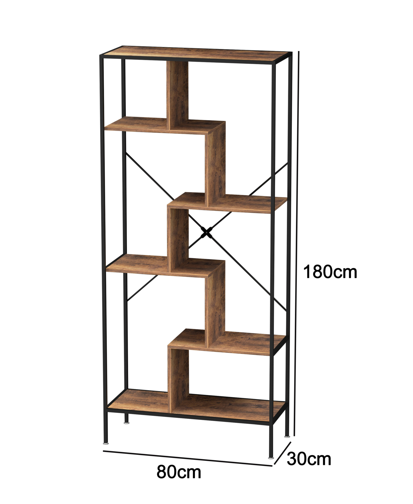 In een modern industrieel look ontworpen open wandkast boekenkast met een zwart metalen frame met bruin houten legplanken. De speelse indeling van de planken en vakken van deze vakkenkast geeft veel mogelijkheden en is daarom geschikt als boekenkast wandkast archiefkast kantoorkast of als universele kast voor het plaatsen en tonen van uw verzamelingen of andere items. Maak uw inrichting sfeervol en compleet met dit moderne industrieel meubel als blikvanger in uw woonkamer slaapkamer kantoor werkkamer studeerkameren of iedere andere gewenste ruimte in uw woning. Afmetingen breed 80 cm x diep 30 cm x hoog 180 cm. Levering inclusief montage instructie en benodigde onderdelen.