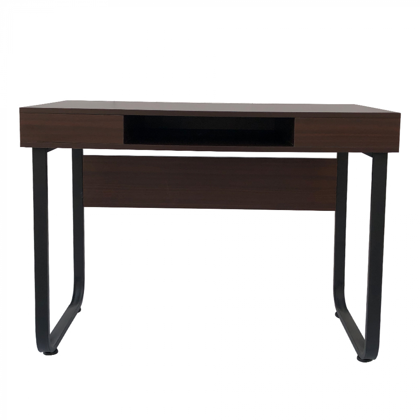Voldoende werkruimte op het bureaublad met opbergruimte in de 3 smalle open vakken gecombineerd in een industrieel vintage look geproduceerd bureau computertafel met een zwart metalen frame en een bruin houten tafelblad. De open opbergvakken zijn 10 cm hoog en zijn zowel aan de voorkant als rechts en links in deze tafel verwerkt. Dit bureau is onder andere te gebruiken als laptoptafel computer buro of tekentafel maar staat ook zeker mooi als sidetable of wandmeubel. Dit bureau is ontworpen voor elke ruimte in uw woning kantoor werkkamer ontvangstruimte studeerkamer slaapkamer of woonkamer en zal daar een echte functionele blikvanger zijn. Erg stevig en stabiel met een werkblad van breed 110 cm x diep 55 cm en de hoogte tot bovenkant tafelblad is 68 cm. Levering inclusief handleiding en benodigde montage materialen.