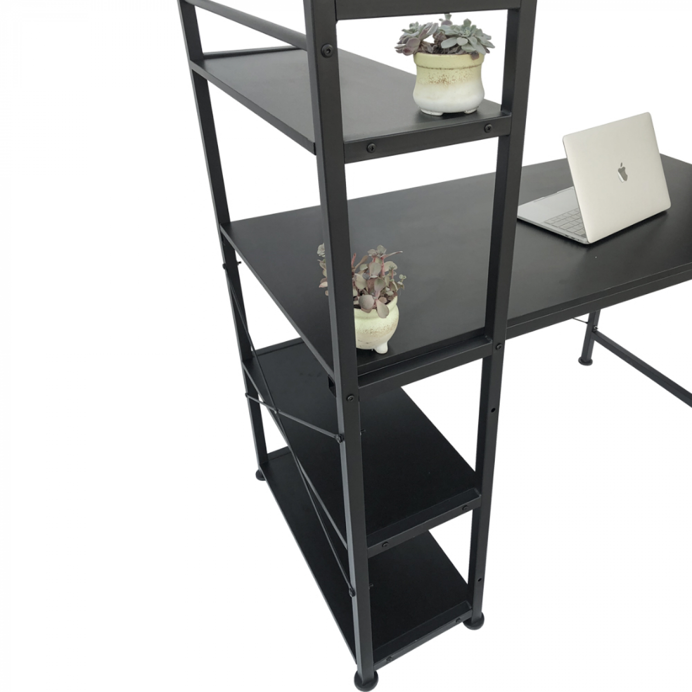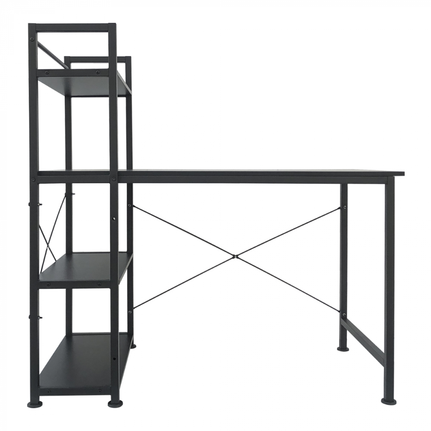 Bureau computertafel Stoer – 3 opbergplanken – industrieel modern – metaal hout – zwart