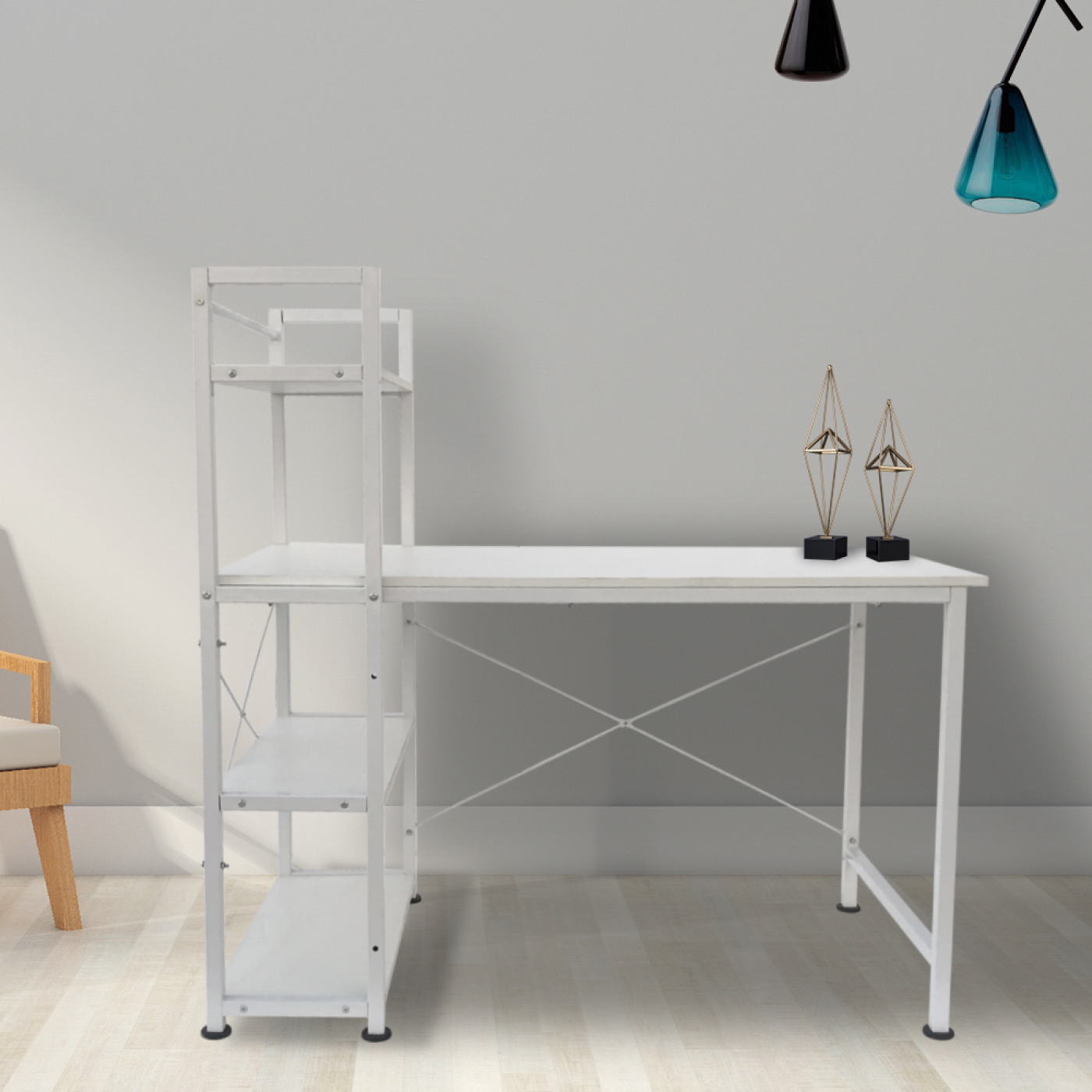 Bureau computertafel Stoer – 3 opbergplanken – industrieel modern wit – metaal hout