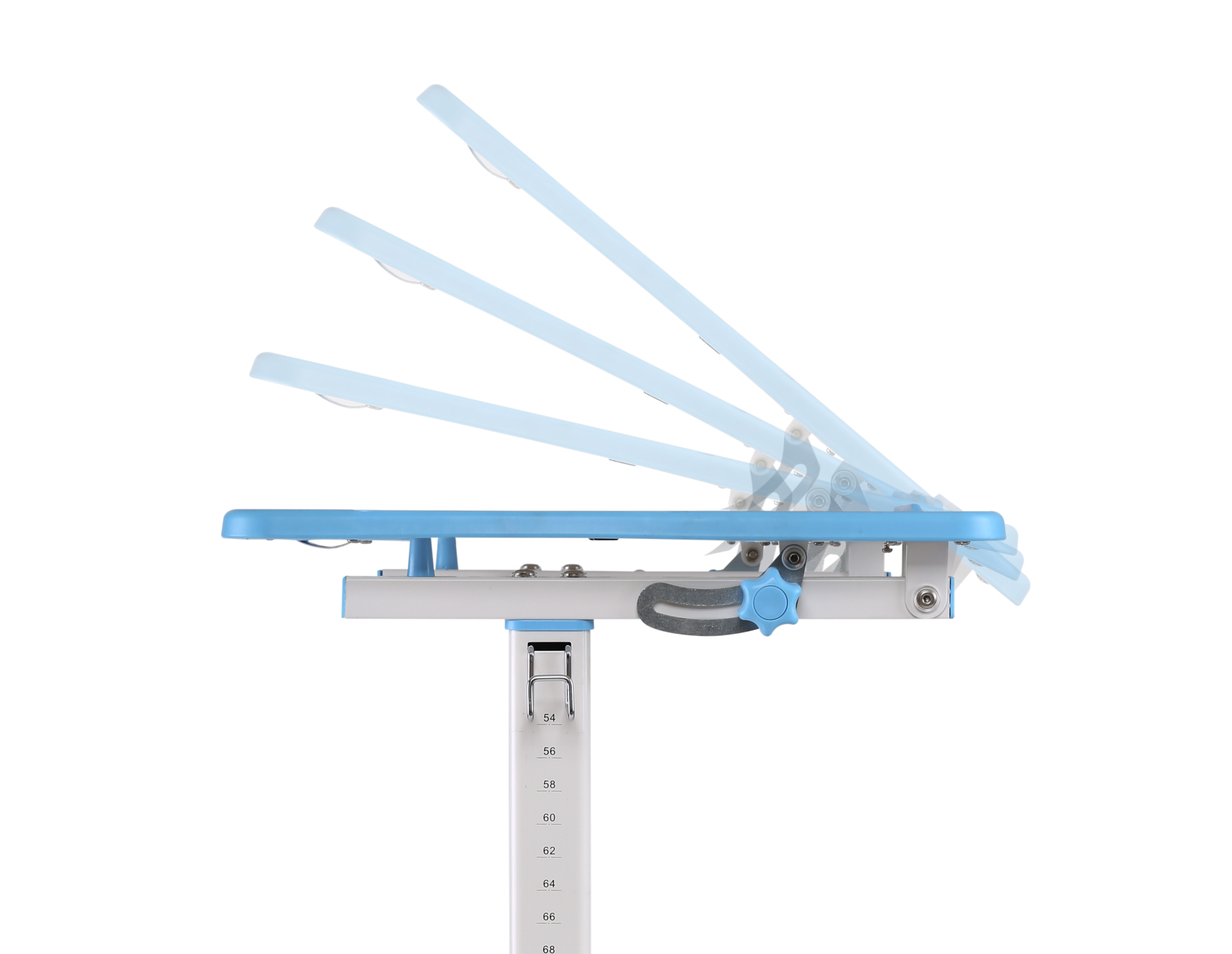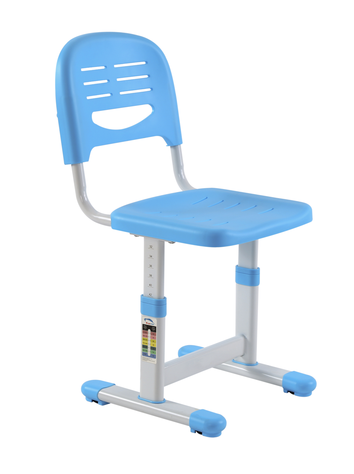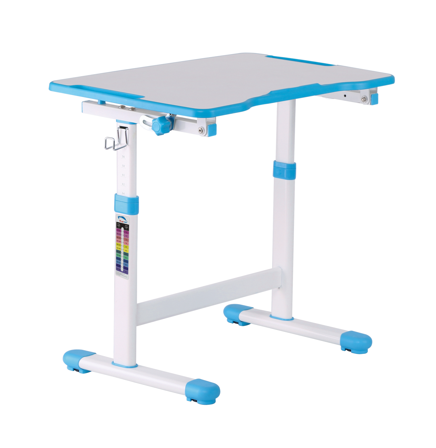 Voor een gezonde groei van uw kind is een juiste houding tijdens het zitten belangrijk. Het zit immers in een constante groeiperiode. Deze set van een bureau en een bureaustoel groeit met uw kind mee. Het ergonomisch in hoogte verstelbaar kinderbureau met bijpassende ergonomisch in hoogte verstelbare bureaustoel is speciaal ontworpen om een meer vriendelijke en comfortabele leeromgeving te bieden. Zowel het bureau als ook de stoel kunnen moeiteloos in hoogte worden versteld voor een optimale aanpassing aan de huidige lengte van uw kind. De stoel heeft een ergonomisch ontwerp zodat de rug van het kind gedwongen word om de juiste positie aan te nemen. Het bureaublad met de afmeting van 66 cm x 47 cm kan tot 40 graden vrij worden gekanteld voor een betere hoek tijdens het schrijven lezen en tekenen. Bureau in hoogte van 54 cm tot 76 cm te verstellen en de bureaustoel in hoogte te verstellen van 32 cm tot 44 cm. Maximaal belastbaar gewicht van de stoel en het bureau zijn 100 kg. Kleur wit met blauw. Afmetingen bureau: tafelblad breed 66 cm x diep 47 cm x hoogte 54 cm tot maximaal 76 cm verstelbaar. Afmetingen stoel: breed 36.5 cm x diep 34.5 x zit hoogte 32 tot 44 cm verstelbaar. Levering inclusief benodigde onderdelen en montage instructie.