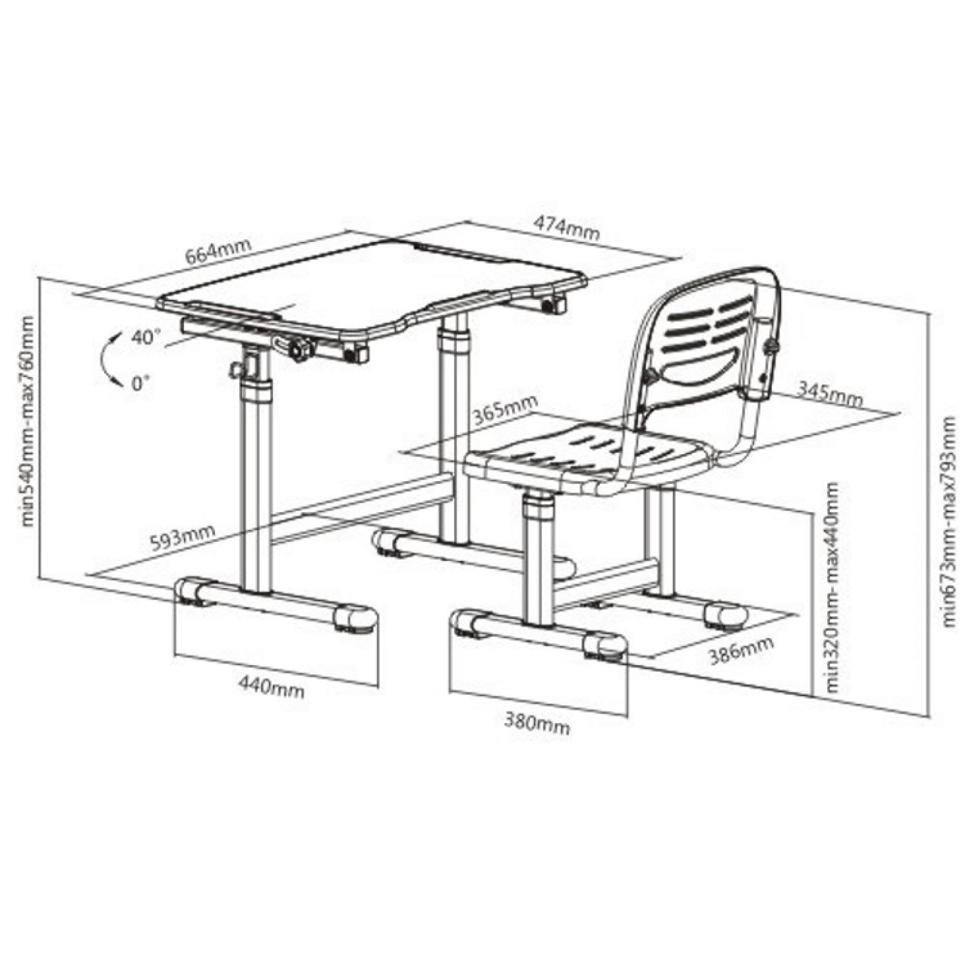 Bureau kinderen met bureaustoel – tekentafel – ergonomisch in hoogte verstelbaar