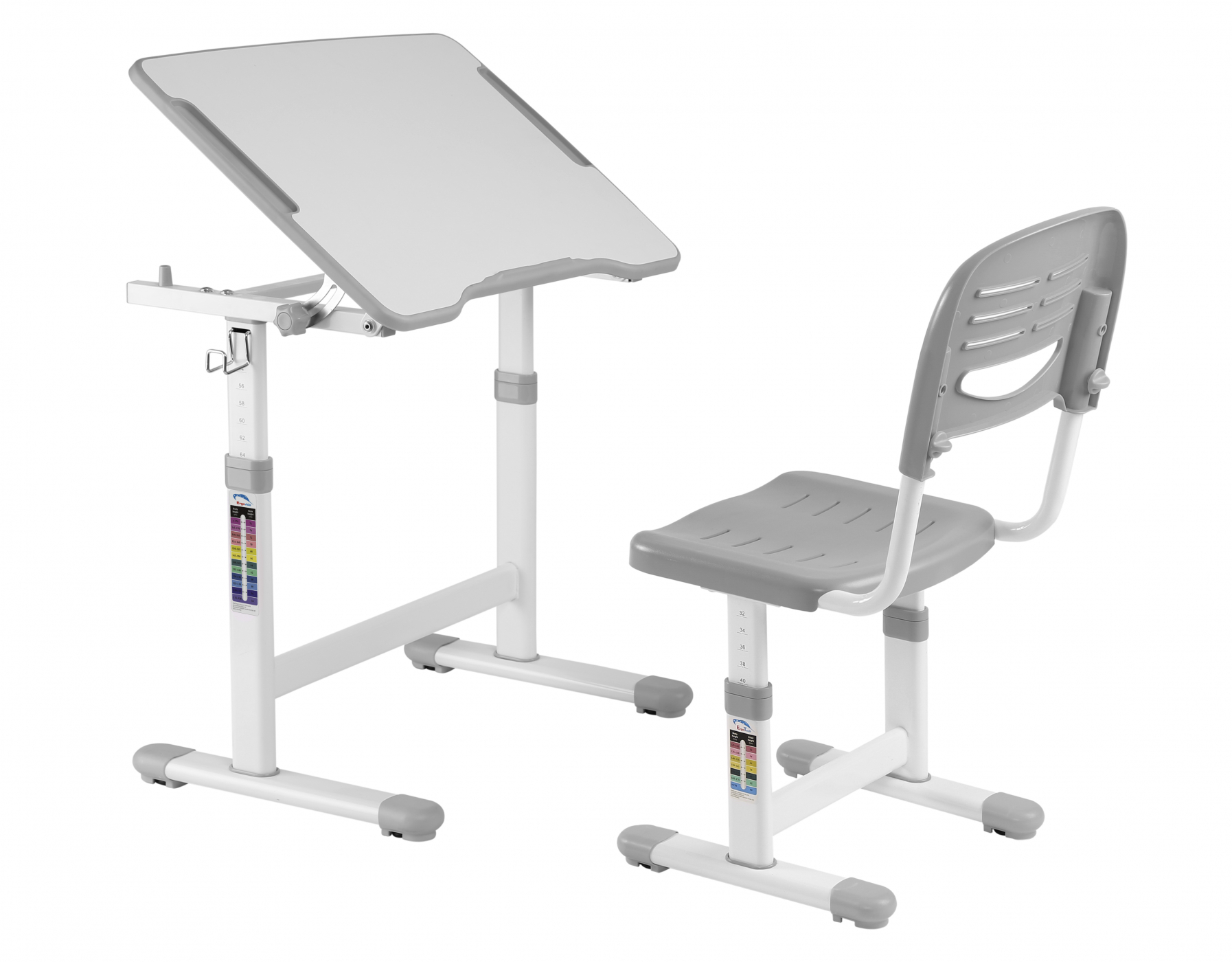 Voor een gezonde groei van uw kind is een juiste houding tijdens het zitten belangrijk. Deze set van een bureau en een bureaustoel groeit met uw kind mee. Het ergonomisch in hoogte verstelbaar kinderbureau met bijpassende ergonomisch in hoogte verstelbare bureaustoel is speciaal ontworpen om een meer vriendelijke en comfortabele leeromgeving te bieden. Zowel het bureau als ook de stoel kunnen moeiteloos in hoogte worden versteld voor een optimale aanpassing aan de huidige lengte van uw kind. De stoel heeft een ergonomisch ontwerp zodat de rug van het kind gedwongen word om de juiste positie aan te nemen. Het bureaublad met de afmeting van 66 cm x 47 cm kan tot 40 graden vrij worden gekanteld voor een betere hoek tijdens het schrijven lezen en tekenen. Bureau in hoogte van 54 cm tot 76 cm te verstellen en de bureaustoel in hoogte te verstellen van 32 cm tot 44 cm. Maximaal belastbaar gewicht van de stoel en het bureau zijn 100 kg. Kleur wit met grijs. Afmetingen bureau: tafelblad breed 66 cm x diep 47 cm x hoogte 54 cm tot maximaal 76 cm verstelbaar. Afmetingen stoel: breed 36.5 cm x diep 34.5 x zit hoogte 32 tot 44 cm verstelbaar. Levering inclusief benodigde onderdelen en montage instructie.