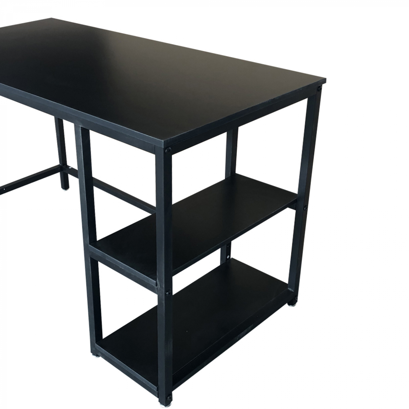 Bureau Stoer – computertafel – industrieel design – met opbergplanken – zwart