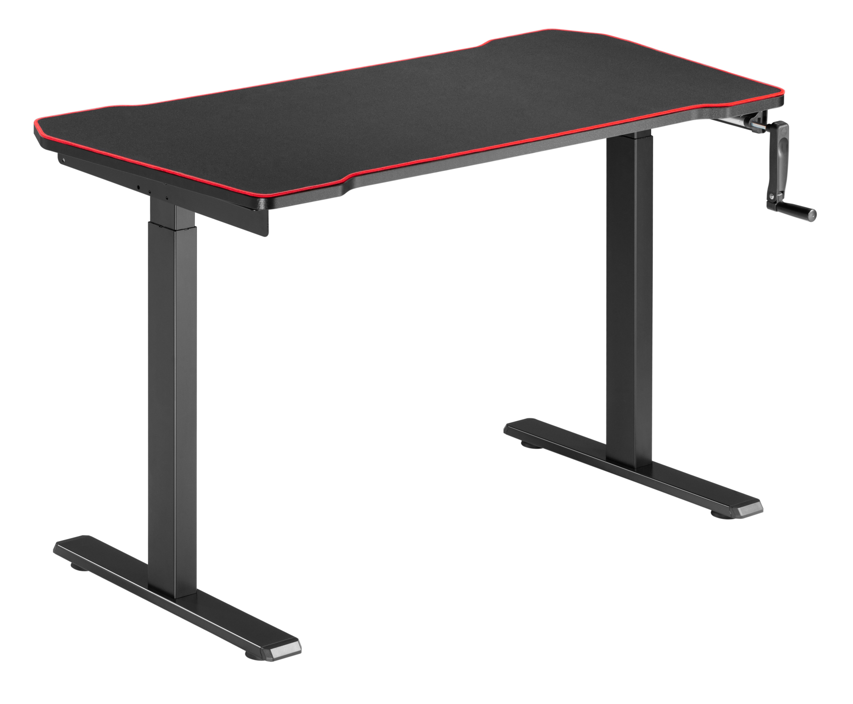 Dit kwalitatief zeer stevige en stabiele in hoogte verstelbare game bureau mag niet ontbreken in uw gaming set up. Het formaat van het bureau blad van 120 cm breed en 60 cm diep heeft voldoende uimte voor het plaatsen van al uw game accessoires en 1 of 2 beeldschermen. Dit gaming bureau heeft een stevig stabiel stalen frame dat handmatig in hoogte verstelbaar is van 72 cm tot 120 cm zodat u naar eigen wens de hoogte kunt instellen en zelfs staand aan het bureau uw games kunt spelen of kunt werken aan uw computer. Het bureaublad is gemaakt van 18 mm meubelpaneel met een melamine toplaag en heeft een ergonomische vorm voor optimaal comfort. De volledige muismat over het hele bureaublad geeft dat beetje extra luxe! Maximaal draaggewicht van dit gaming bureau is 60 kg. Formaat van dit bureau is 120 cm breed 60 cm diep en in hoogte verstelbaar van 72 cm tot 120 cm hoog. Kleur, zwart frame met zwart bureaublad en zwarte muismat afgewerkt met een rode rand over het gehele bureau. Levering inclusief montage instructie en benodigde onderdelen.