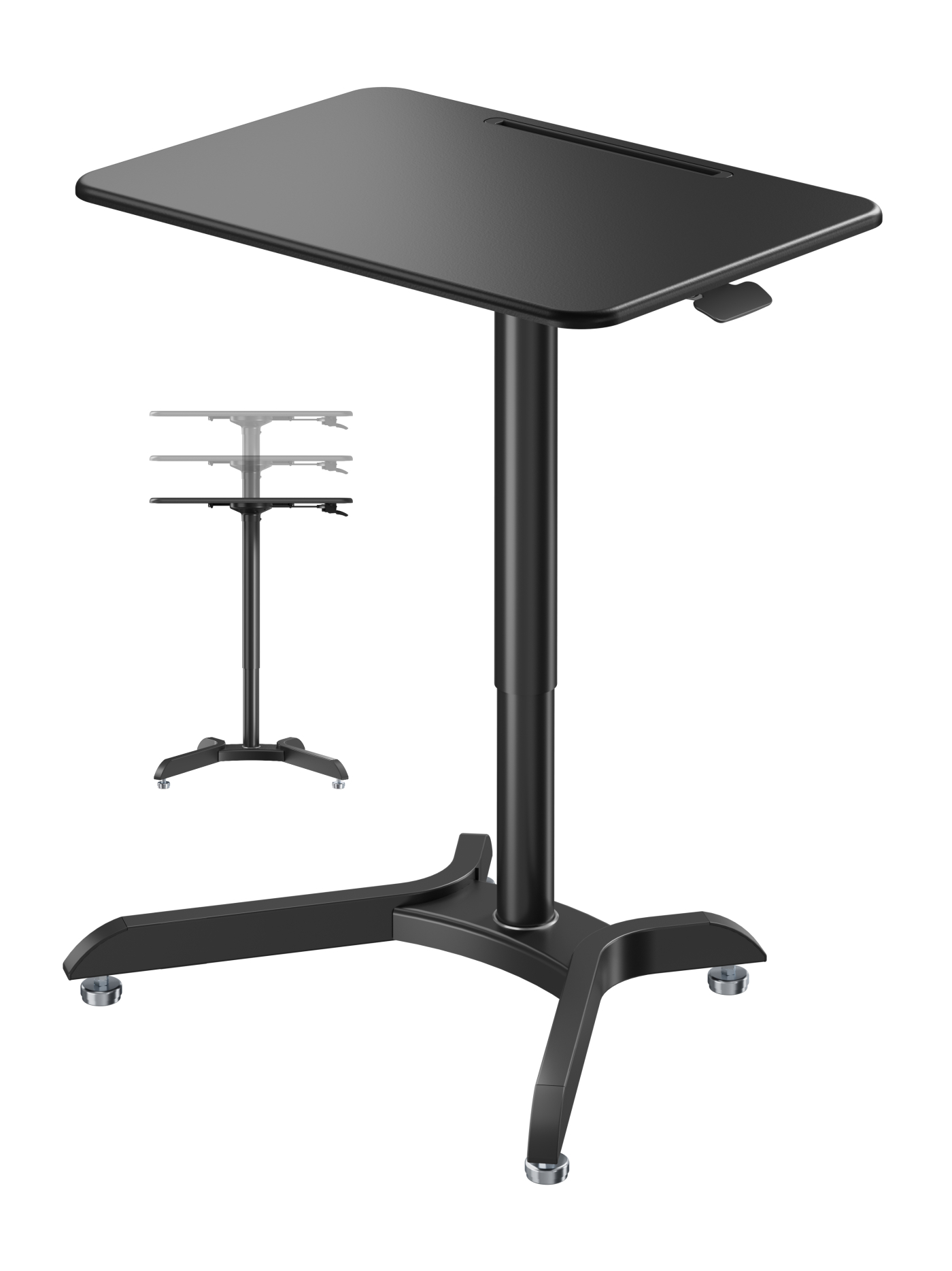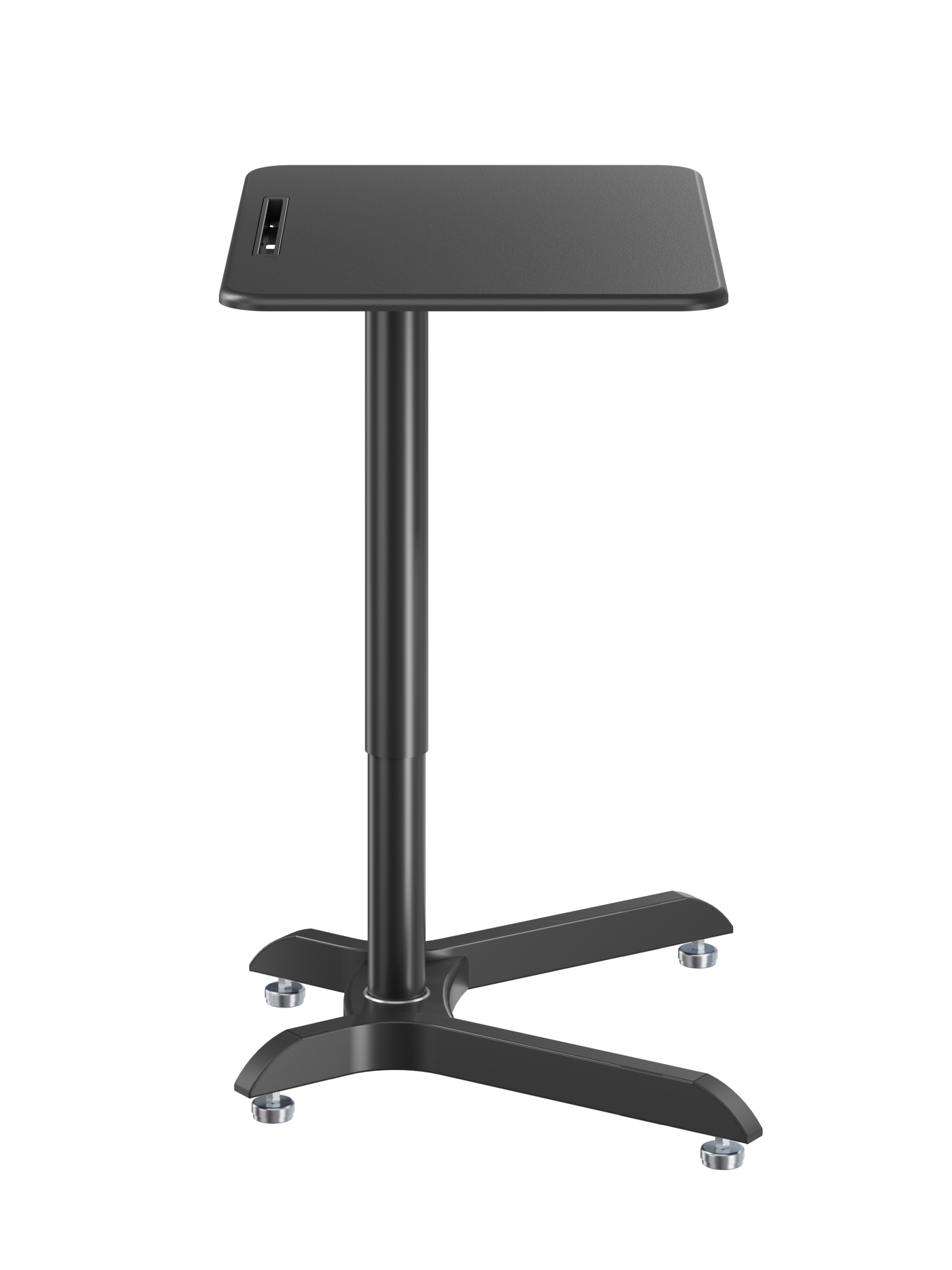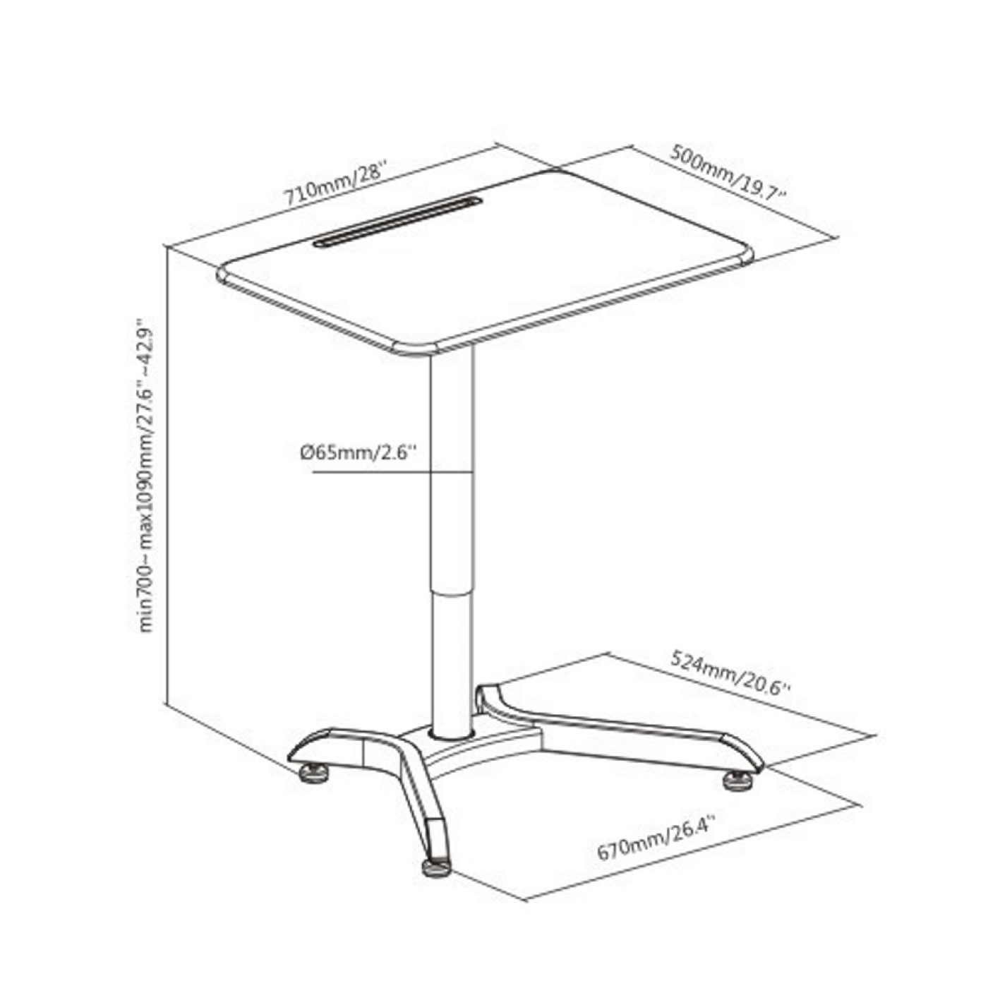 Met minimale inspanning verander je de hoogte van dit zwarte zit sta bureau werkstation van 70 cm tot maximaal 110 cm. U kunt naar wens kiezen voor zitten of staan bij het uitvoeren van uw werkzaamheden of tijdens een vergadering of het geven van een presentatie. Het bureaublad van 71 cm breed en 50 cm diep met als extra een tabletsleuf biedt voldoende ruimte en een comfortabele werkplek. De knijphendel zorgt samen met de contrabalans gasveer voor soepele en snelle hoogte aanpassingen waardoor dit zit sta bureau werkstation uitermate geschikt is om te delen met gebruikers van verschillende lengtes. Door de afzonderlijk in hoogte verstelbare voeten staat de laptoptafel stabiel op de meest ongelijke vloer of oppervlak. Afmetingen van dit mobiele zit sta bureau zijn breed 71 cm x diep 50 cm x hoog instelbaar van 70 cm tot 110 cm.