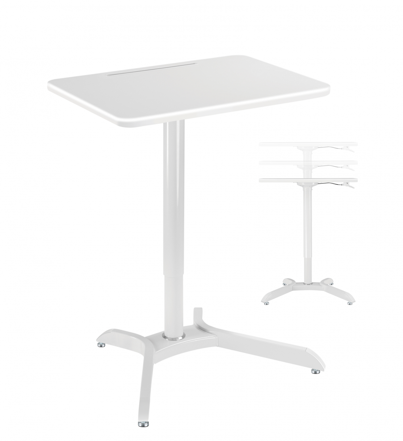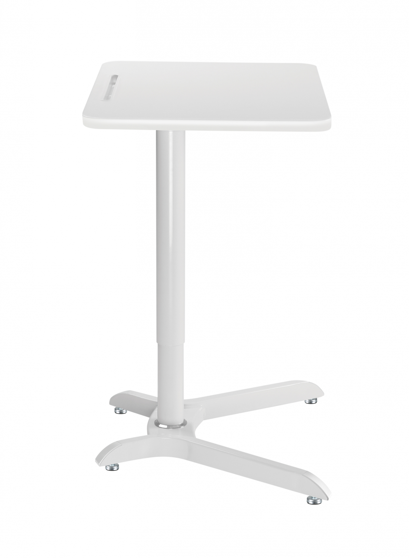Met minimale inspanning verander je de hoogte van dit witte zit sta bureau werkstation van 70 cm tot maximaal 110 cm. U kunt naar wens kiezen voor zitten of staan bij het uitvoeren van uw werkzaamheden of tijdens een vergadering of het geven van een presentatie. Het bureaublad van 71 cm breed en 50 cm diep met als extra een tabletsleuf biedt voldoende ruimte en een comfortabele werkplek. De knijphendel zorgt samen met de contrabalans gasveer voor soepele en snelle hoogte aanpassingen waardoor dit zit sta bureau werkstation uitermate geschikt is om te delen met gebruikers van verschillende lengtes. Door de afzonderlijk in hoogte verstelbare voeten staat de laptoptafel stabiel op de meest ongelijke vloer of oppervlak. Afmetingen van dit mobiele zit sta bureau zijn breed 71 cm x diep 50 cm x hoog instelbaar van 70 cm tot 110 cm.