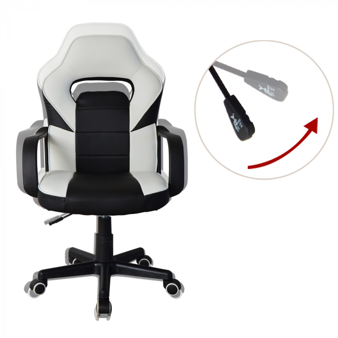 Bureaustoel Thomas junior – gamestoel racing gaming stijl – hoogte verstelbaar – zwart wit
