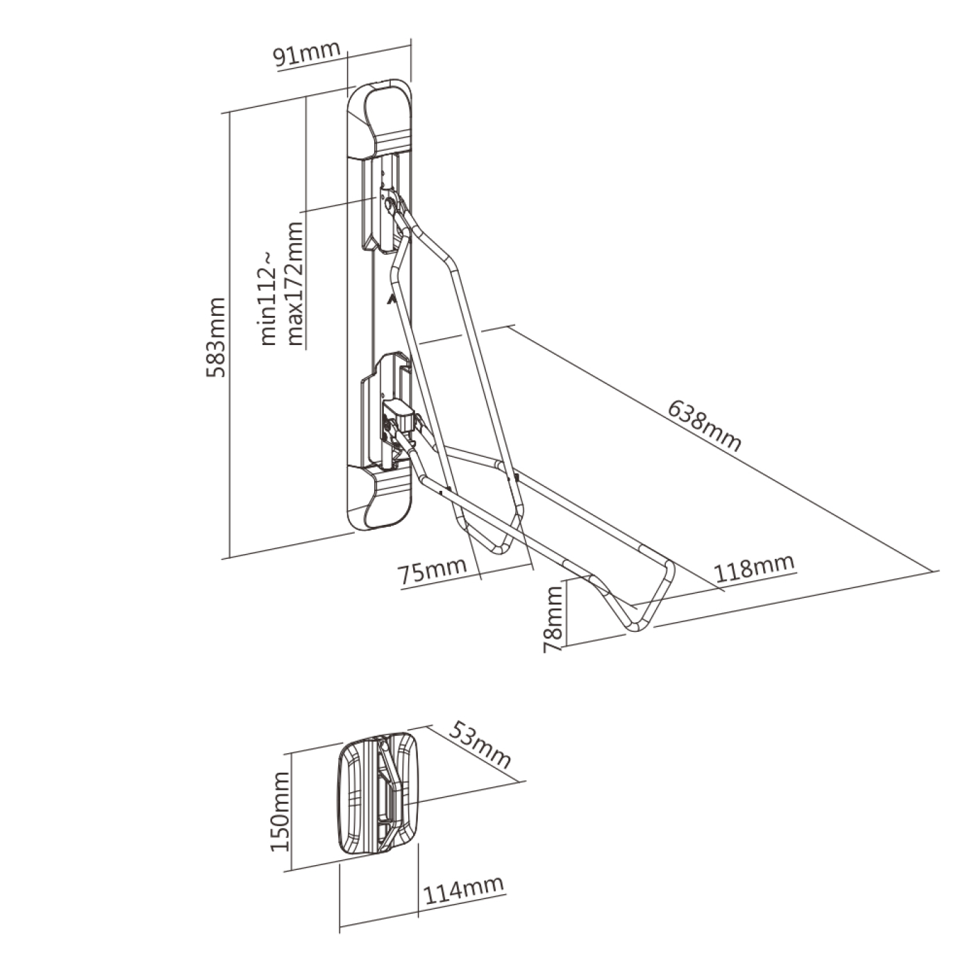 • Ruimtebesparend systeem met 60 graden zij aan zij zwenkende armen.