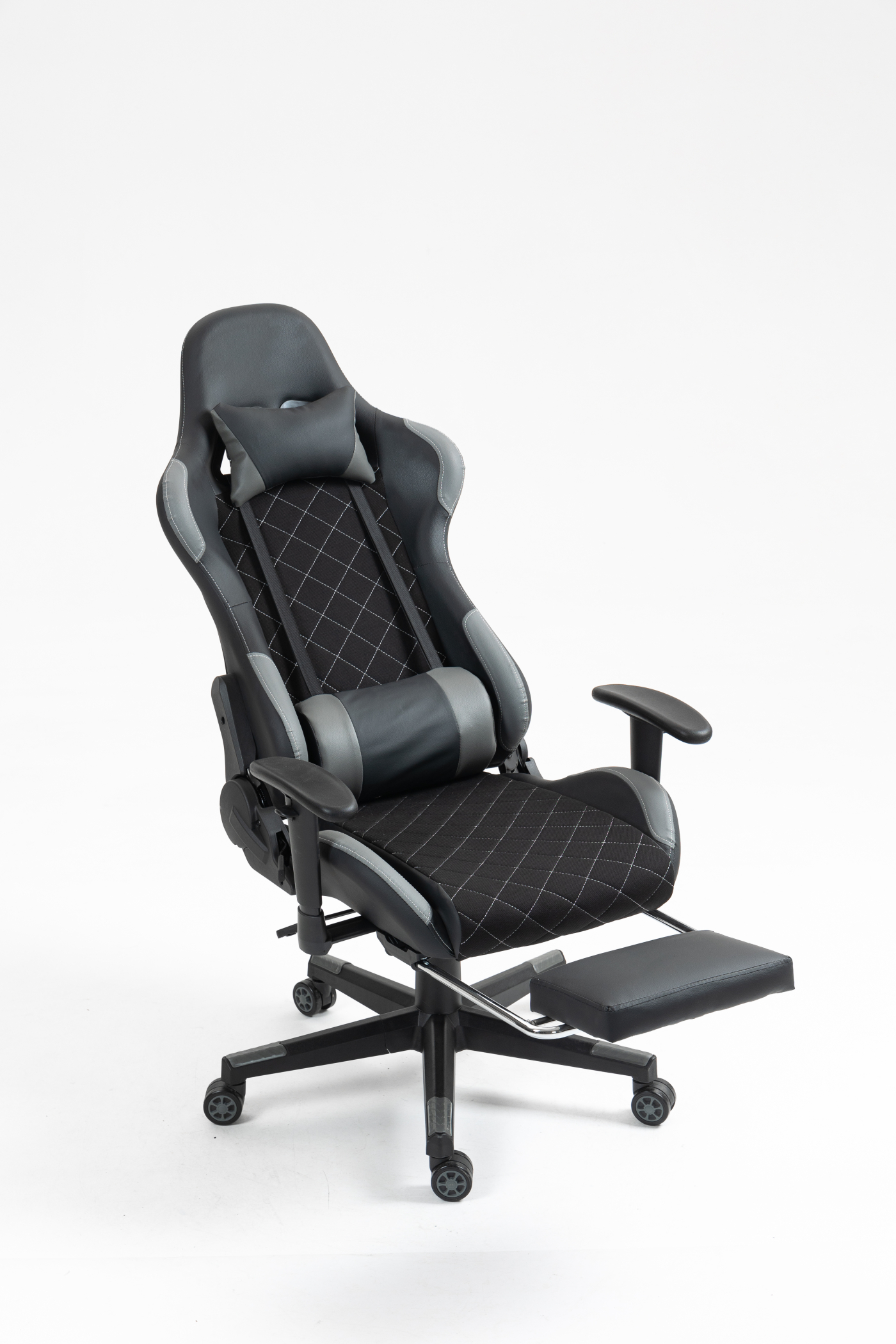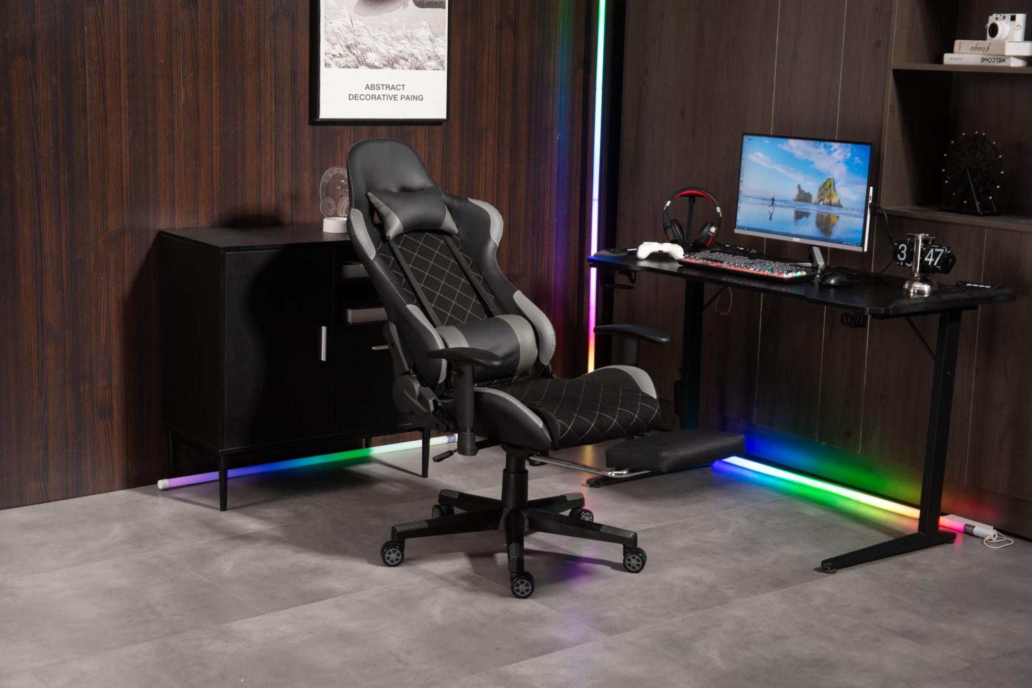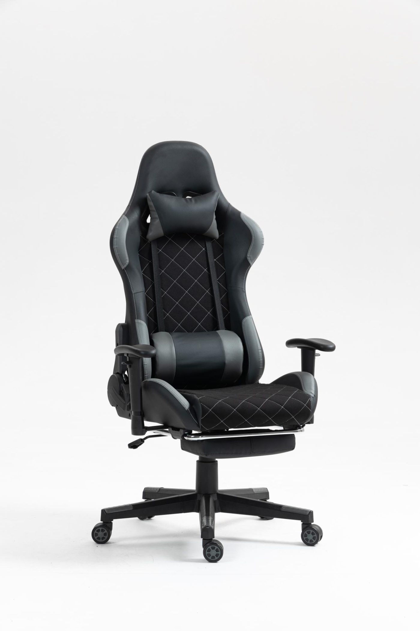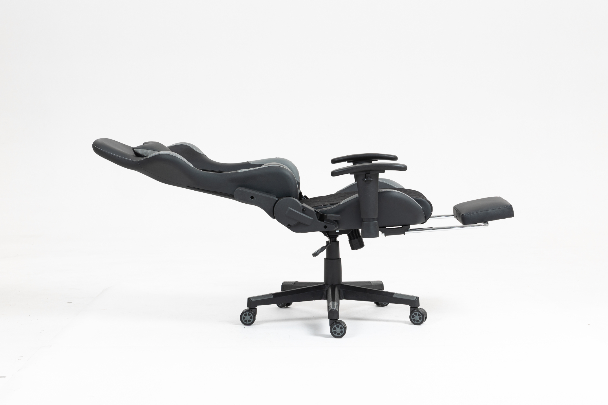 Ergonomische gamestoel met voetensteun – zwart met grijze afwerking