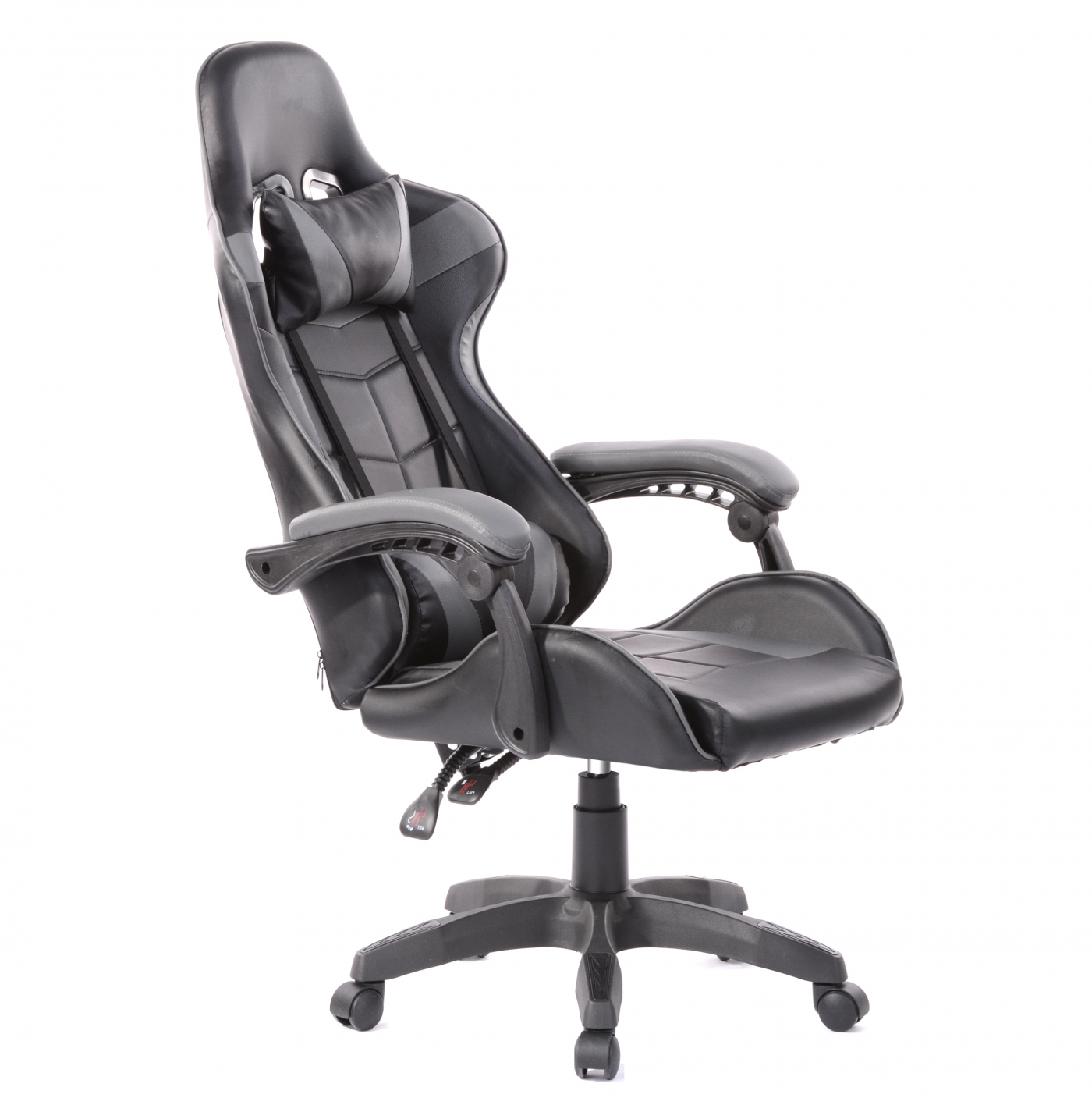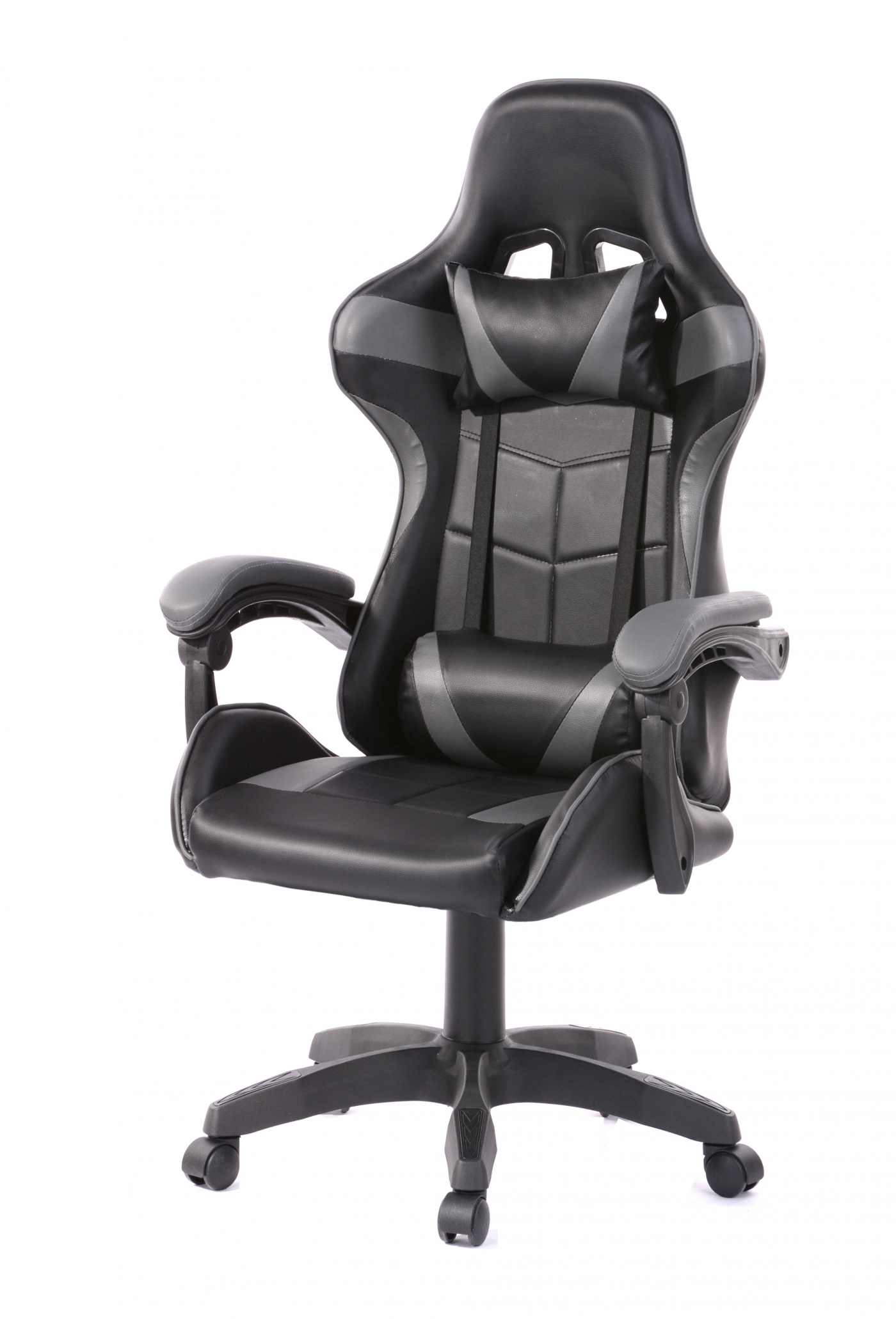 Deze luxe stoel combineert een sportief race-geïnspireerd ontwerp met optimaal zitcomfort. De zwart-grijze PU kunstlederen bekleding is dik gestikt, eenvoudig te reinigen en voorzien van extra padding op armleuningen, zitting en rugleuning. Dankzij het ergonomisch ontwerp met lendenkussen en neksteun kunt u urenlang werken, studeren of gamen in de juiste houding.