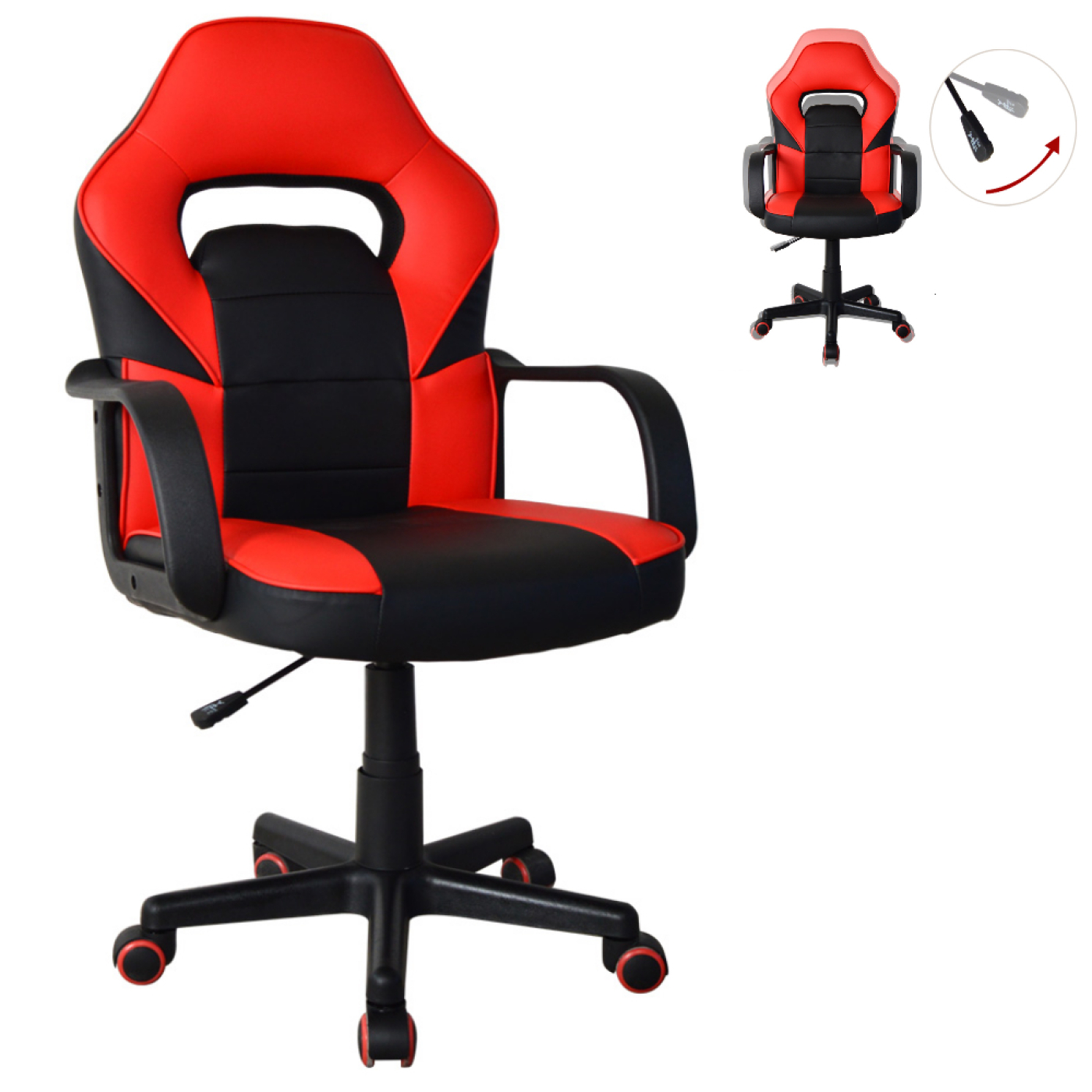 Gamestoel Thomas junior – bureaustoel gaming stijl – hoogte verstelbaar – rood zwart