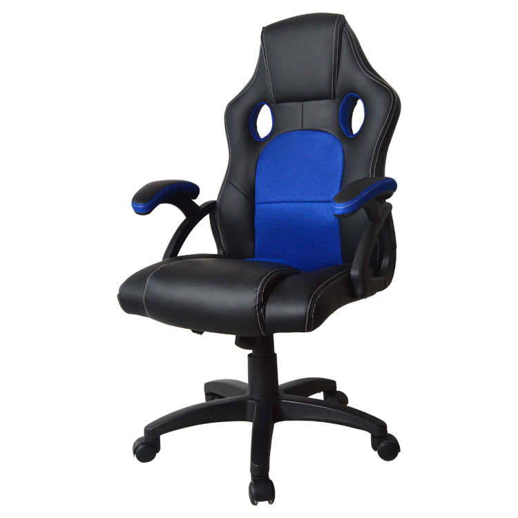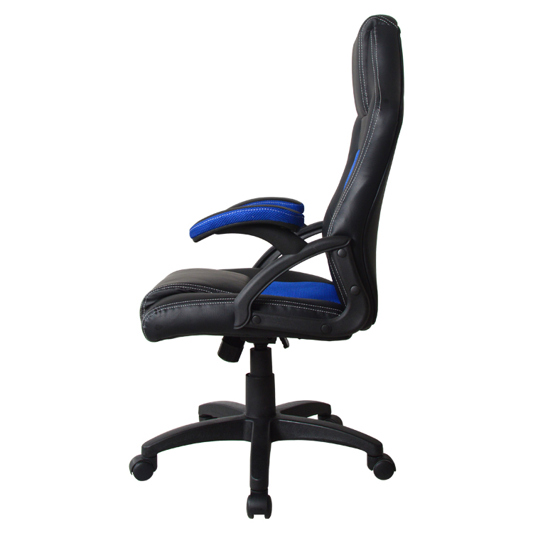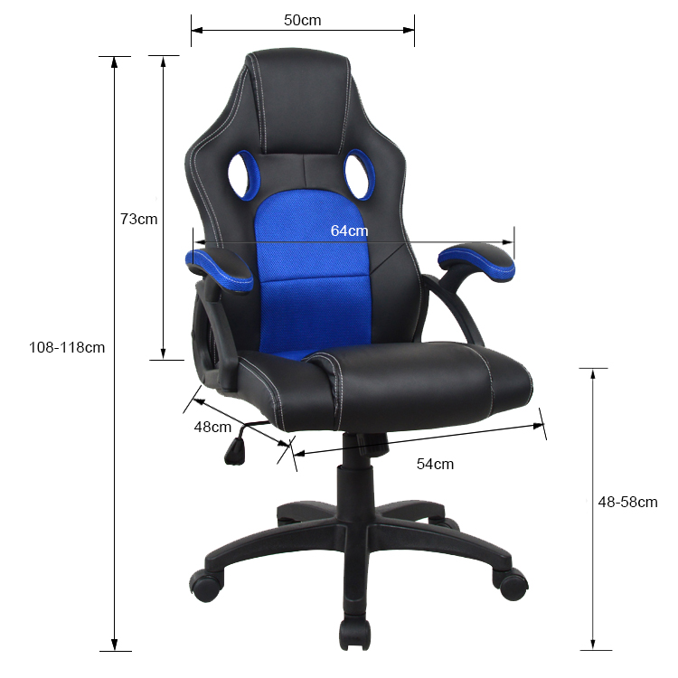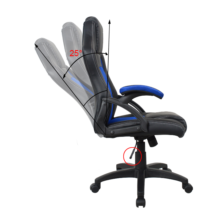 Deze zwart-blauwe junior tiener bureaustoel in gaming-racing stijl biedt hoog zitcomfort voor gamen, studeren en werken. De dikke voering van de bekleding, de goed opgevulde hoofsteun en de brede zitting met ademende mesh inzetstukken zorgen voor een comfortabele en ondersteunende zitervaring. De ergonomisch gevormde, kantelbare rugleuning (instelbaar op lichaamsgewicht) en de armsteunen verhogen het comfort verder.