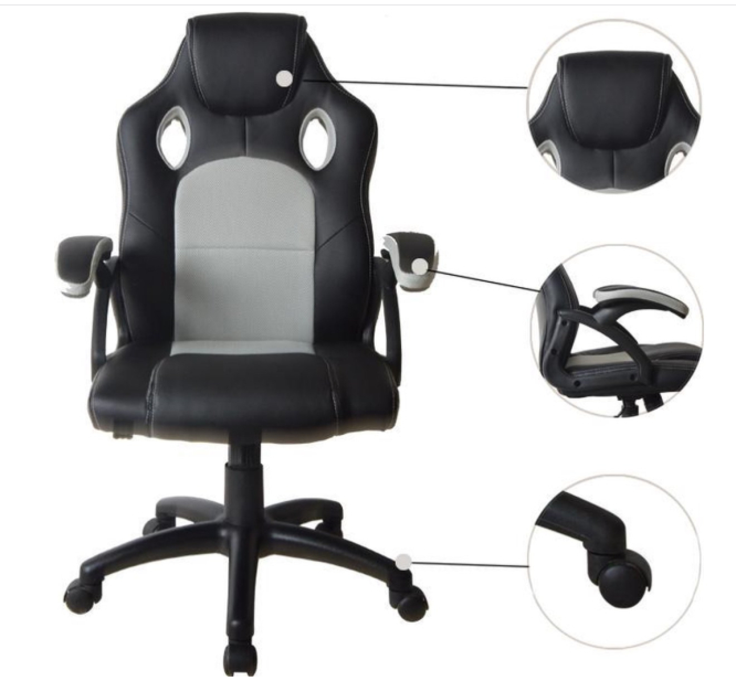 • Stevig kunststof onderstel: Voorzien van vijf soepele zwenkwielen, geschikt voor harde en zachte vloeren.