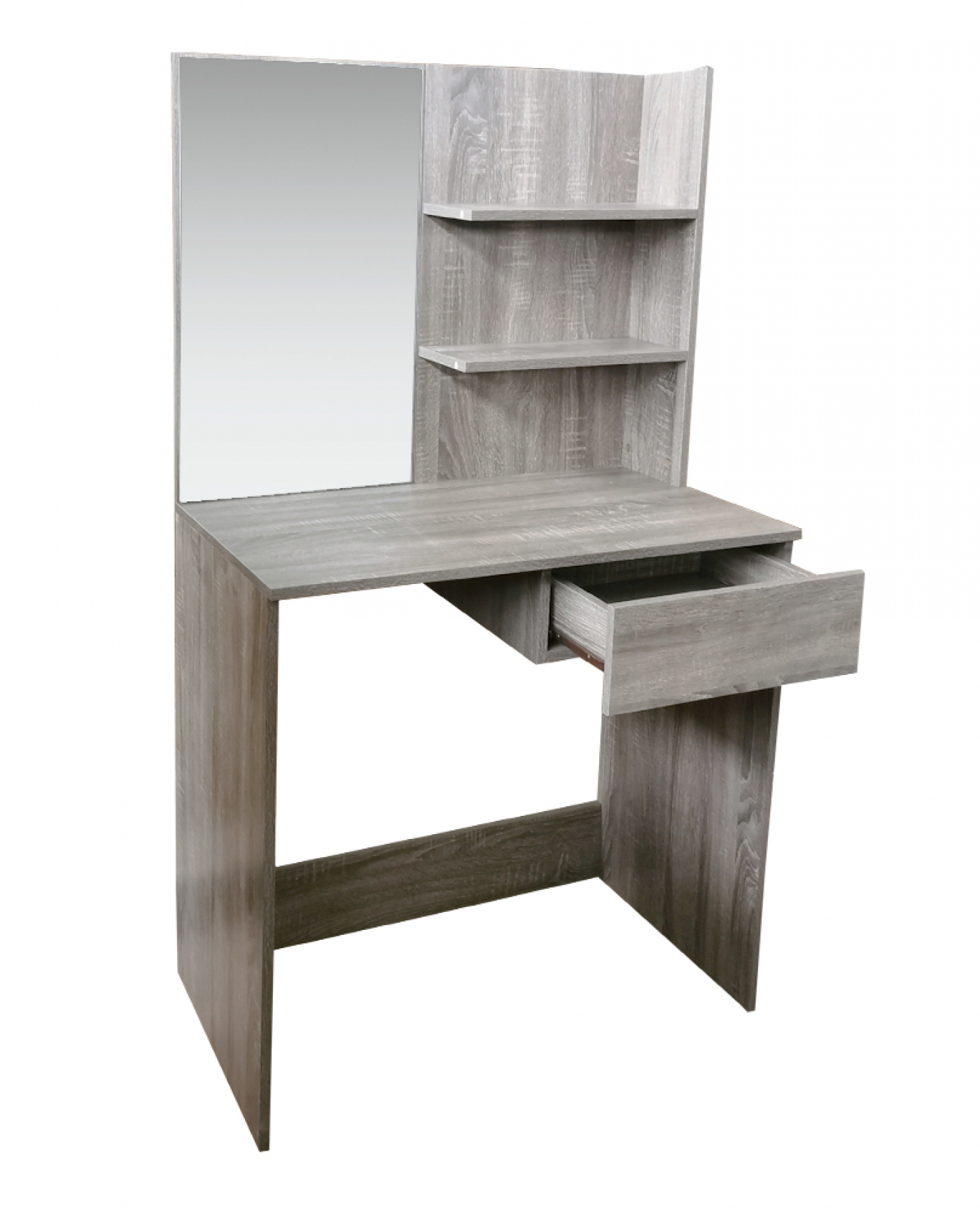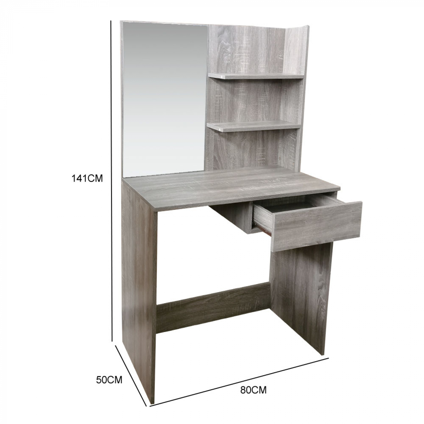Een functionele en mooie bruinkleurige kaptafel meet voldoende opbergruimte en een spiegel. De opmaaktafel toilettafel geeft een extra sfeer in uw kamer en is ook nog eens erg praktisch. Rechts zijn er opbergplankjes en samen met de lade zonder vakindeling biedt dit opbergruimte voor al je make-up visagie verzorgingsproducten en accessoires. Afmetingen: breed 80 cm x diep 50 cm x hoog 141 cm. Levering inclusief benodigde montage materialen en montage handleiding.
