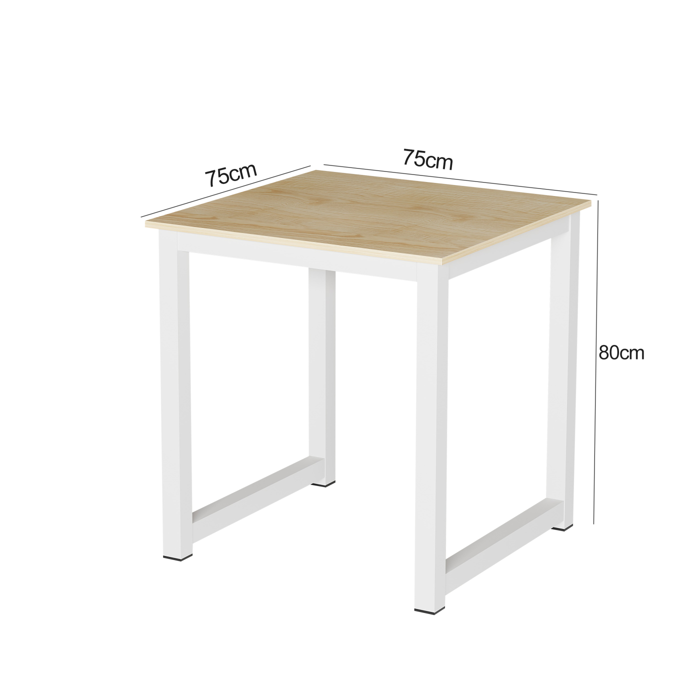 Een praktische stevige keukentafel met een wit metalen frame en een lichtbruin tafelblad geschikt om te gebruiken als bureau of tafel. Het tafelblad is 75 cm breed en 75 cm diep en de hoogte is 80 cm. Passend in elke ruimte van uw woning keuken of kantoor werkkamer. Levering inclusief handleiding en benodigde montage materialen.