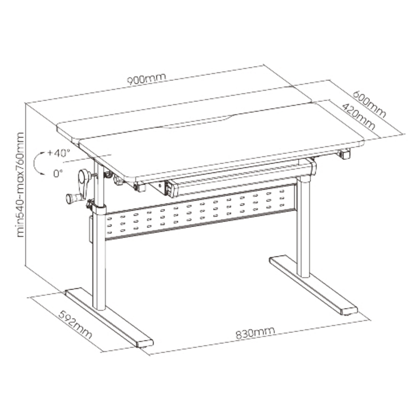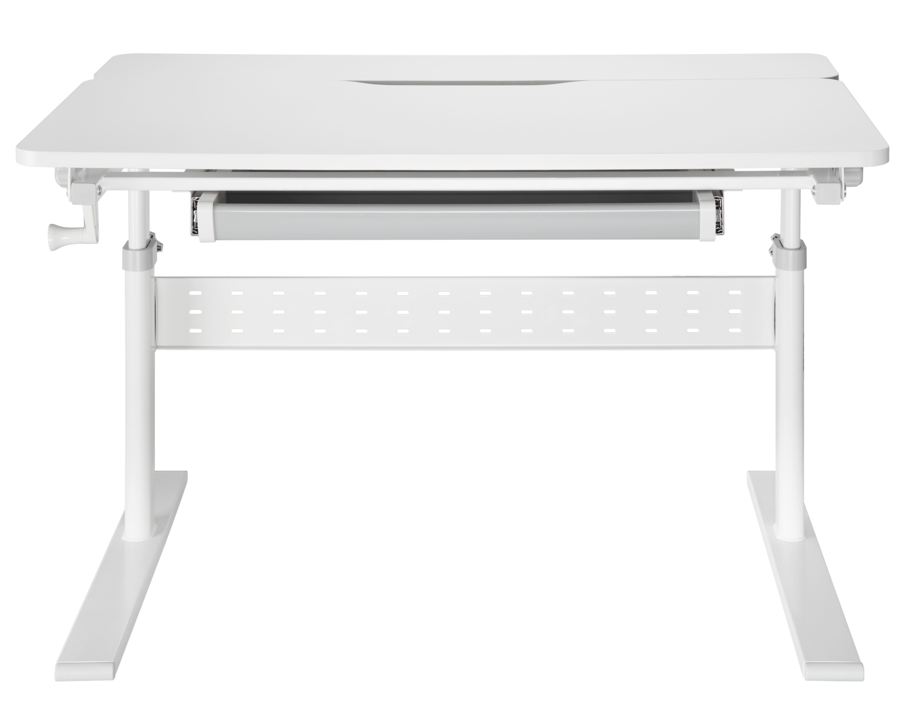 Dit in hoogte verstelbare kinderbureau is de perfecte keuze om gezondere werkgewoonten te bevorderen terwijl een kind groeit. Ergonomisch ontwerp helpt de ruggengraat, schouder, nek en ogen van een kind te beschermen tegen letsel tijdens de vormingsjaren. De hoogte kan eenvoudig worden afgesteld met behulp van een zwengel en het kantelbare bureaublad biedt een optimale hoek voor comfort bij het schrijven, lezen en tekenen. Dankzij de kantelbare boekenhouder kunnen kinderen in een optimale hoek lezen. Vervaardigd met behulp van milieuvriendelijke materialen, met afgeronde hoeken voor veiligheid en comfort in combinatie met hoogwaardige productieprocessen en prestaties. Het kinderbureau beschikt ook over een multifunctionele stalen haak voor tassen, bekers of andere hangende voorwerpen