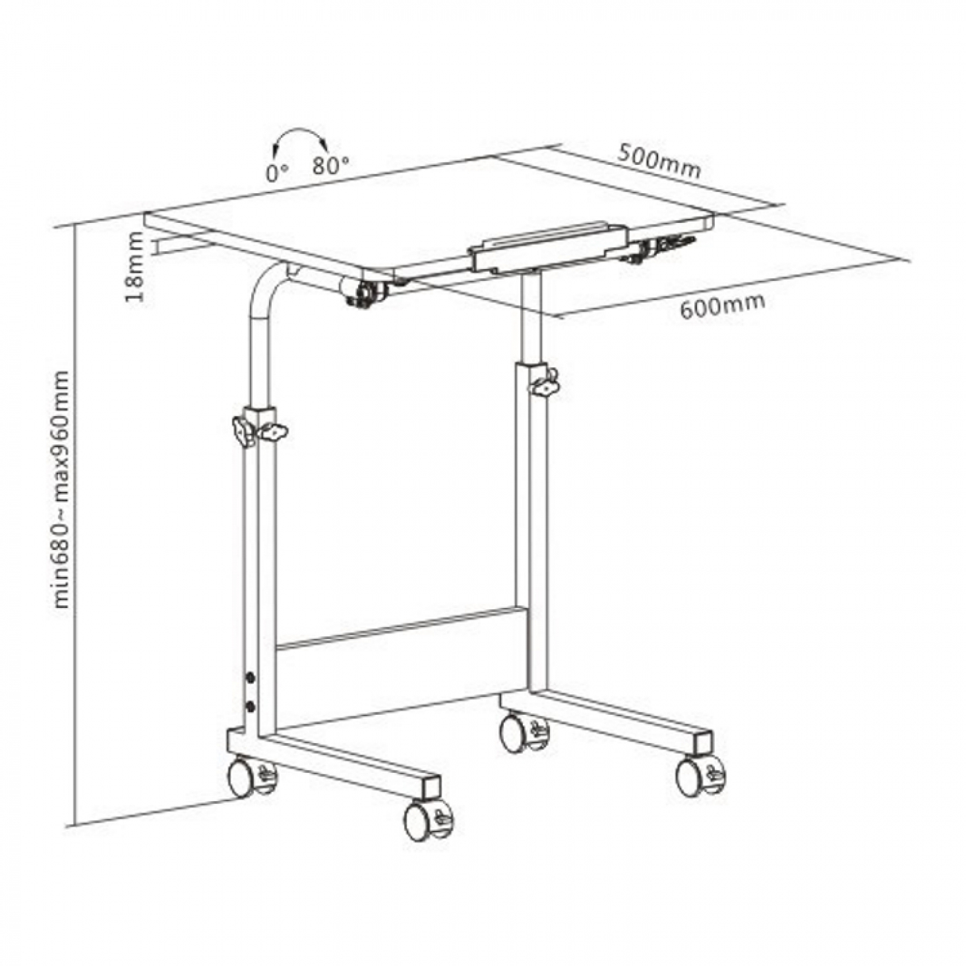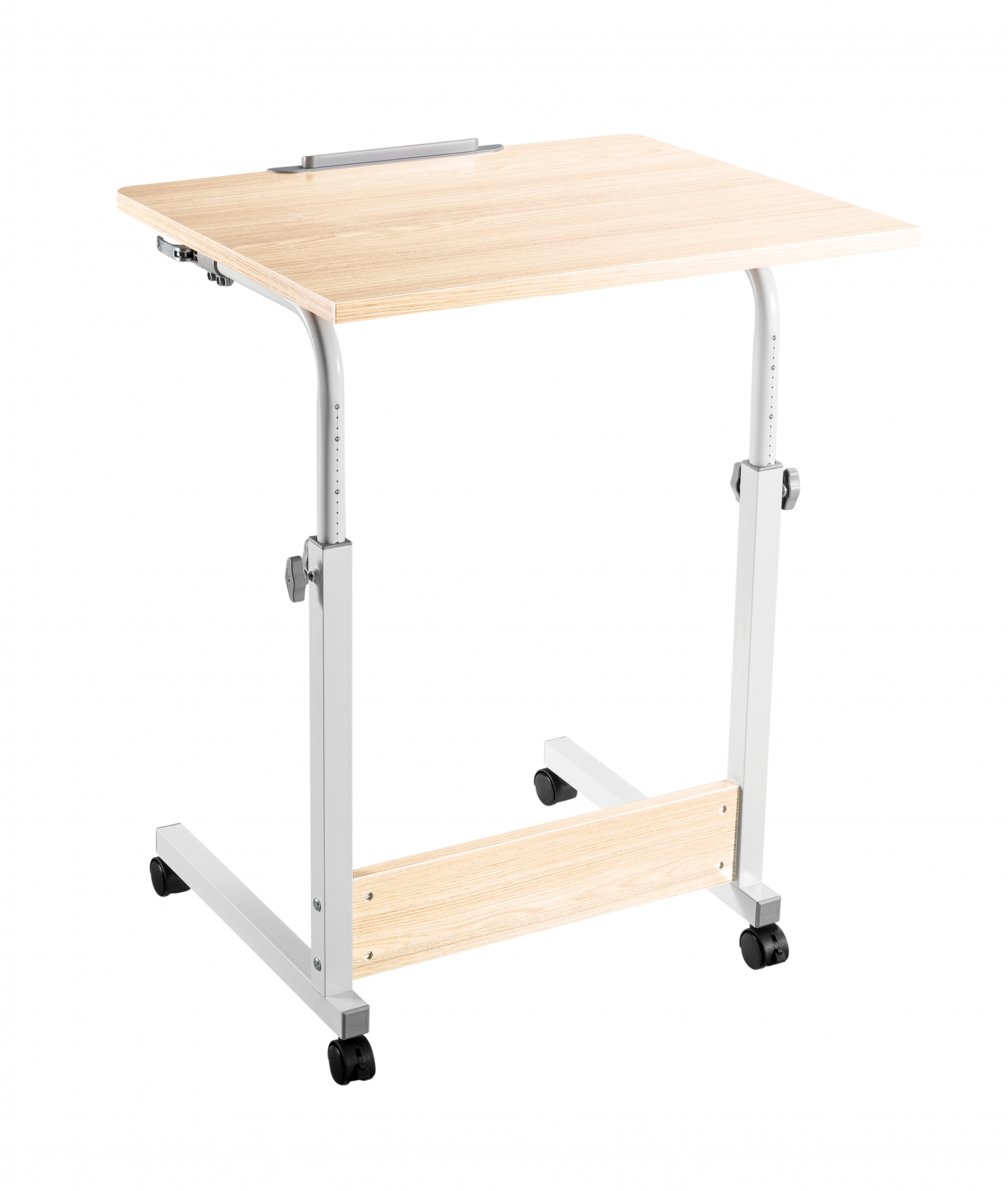 Deze veelzijdige laptoptafel biedt een praktische en flexibele werkplek, ideaal voor gebruik op de bank, in een relaxstoel of als compact zit-sta bureau. Dankzij het kantelbare bureaublad van 60 x 50 cm kunt u eenvoudig de ideale hoek instellen voor schrijven, lezen of tekenen. De hoogte is verstelbaar van 68 tot 96 cm met een handige draaiknop, zodat u de tafel perfect kunt afstemmen op uw werkhouding. De vier vergrendelbare zwenkwielen zorgen voor moeiteloze verplaatsing en stabiliteit.