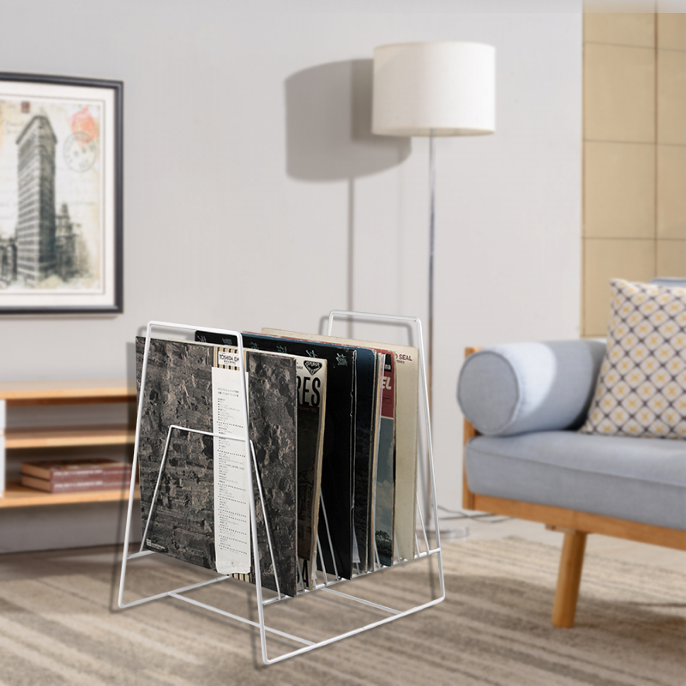LP vinyl platen opbergrek – platen bladerrek – platenkast – opbergen 60 tot 70 platen – wit