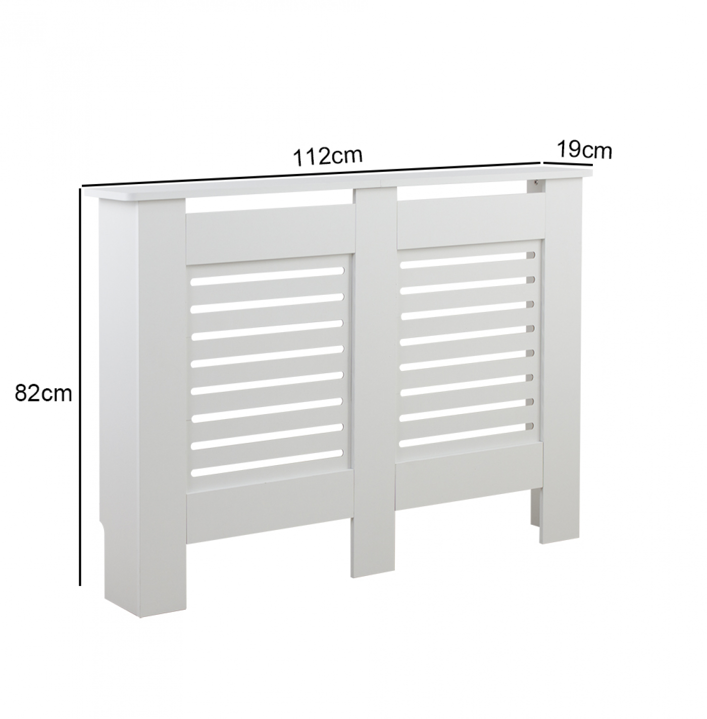 Maak van elke ruimte met nog open verwarmings radiatoren een elegante moderne en strakke ruimte door met deze ombouw de lelijke radiatoren te verbergen zonder de warmte te verliezen. Deze radiator ombouw heeft de afmeting van 112 cm breed x 82 cm hoog x 19 cm diep en is een mooie en zeer functionele en praktische oplossing met decoratieve mogelijkheden. Op de bovenste afdekplank van 19 cm breed kunt u bijvoorbeeld accessoires planten fotolijstjes of andere items plaatsen. De radiatorombouw heeft een modern ontwerp en past in elke ruimte van uw woning of bedrijskantoor. Levering inclusief montage instructie en benodigde onderdelen.