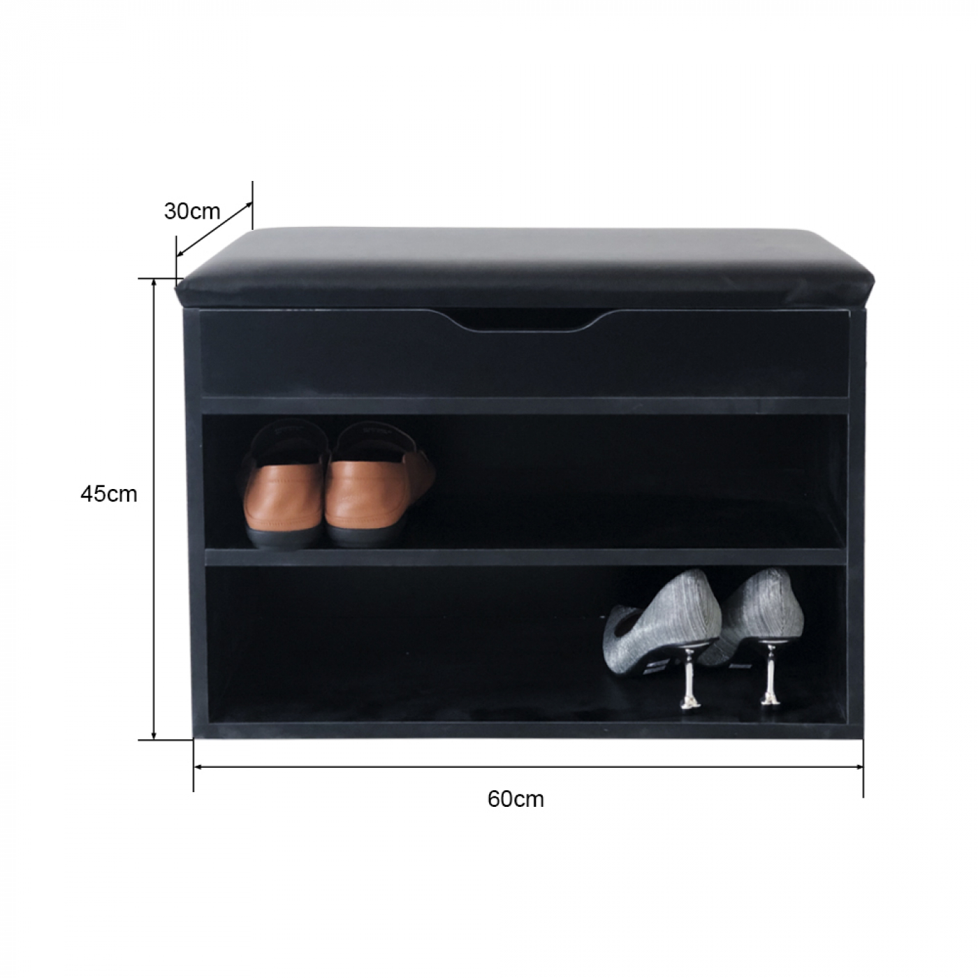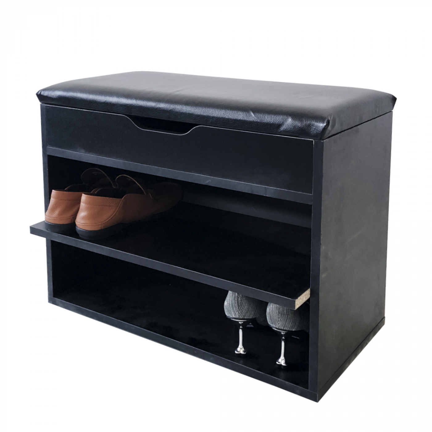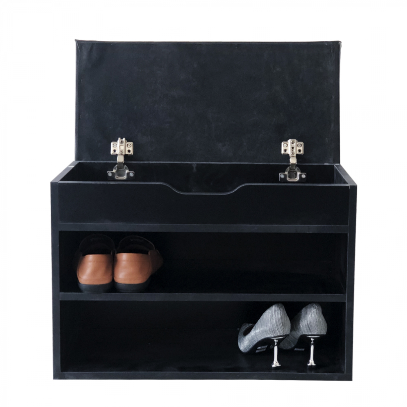 Schoenenbankje – schoenenkast met zitkussen – schoenenrek – zwart