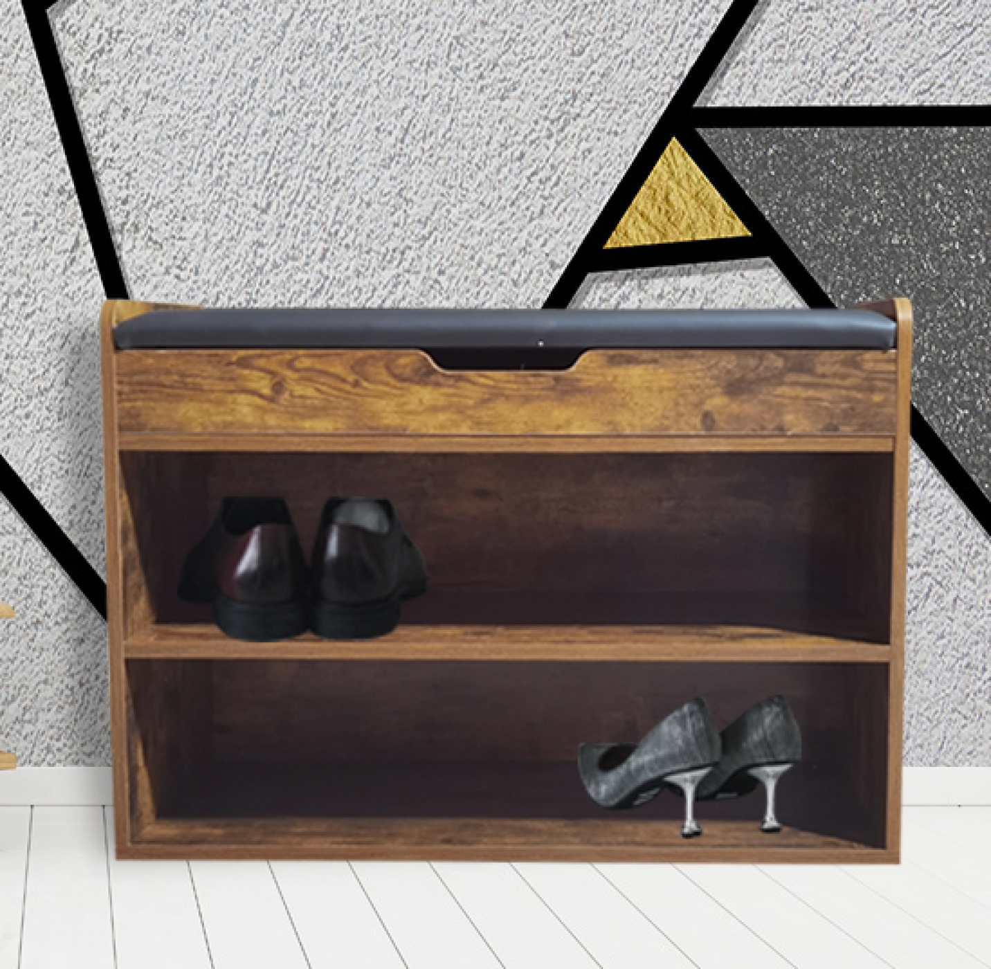 Schoenenkast met zitkussen – Halbankje met schoenen opbergvakken – Vintage bruin