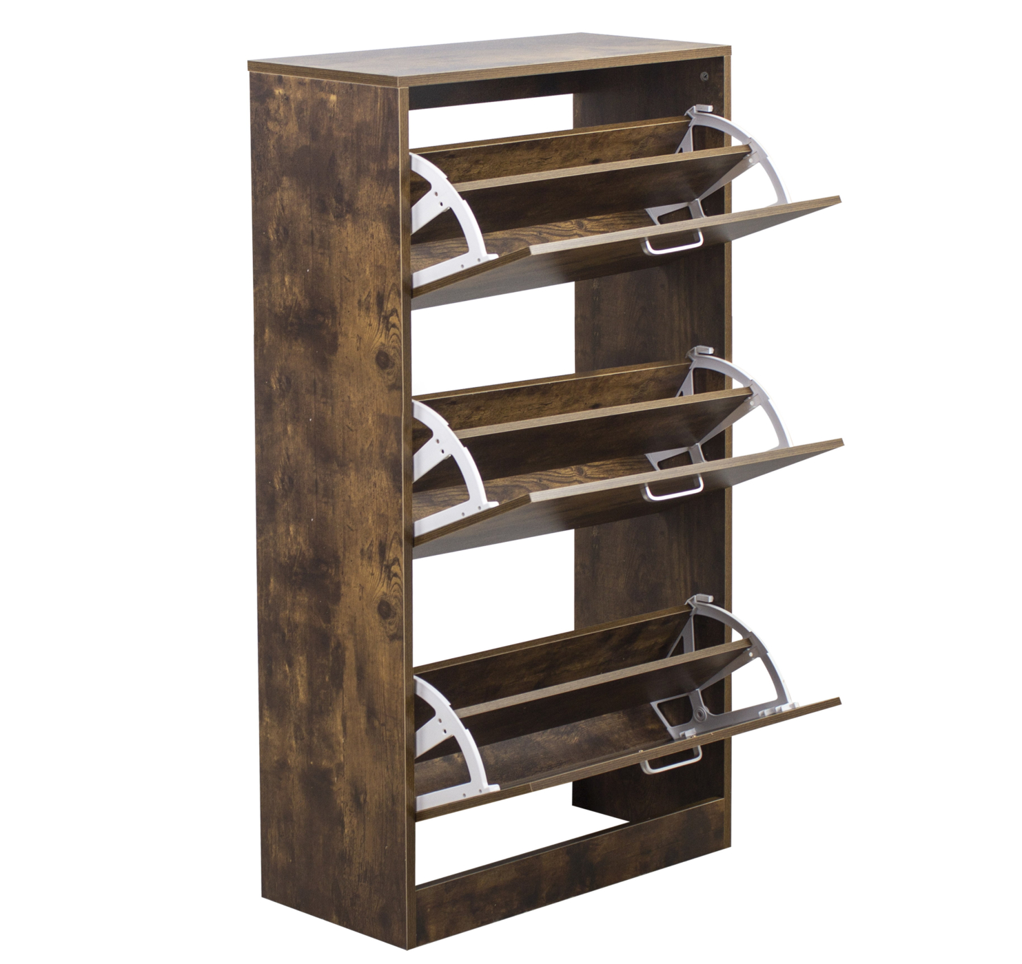 Schoenenkast – schoenenrek – 3 vakken met klepdeuren – donkerbruin