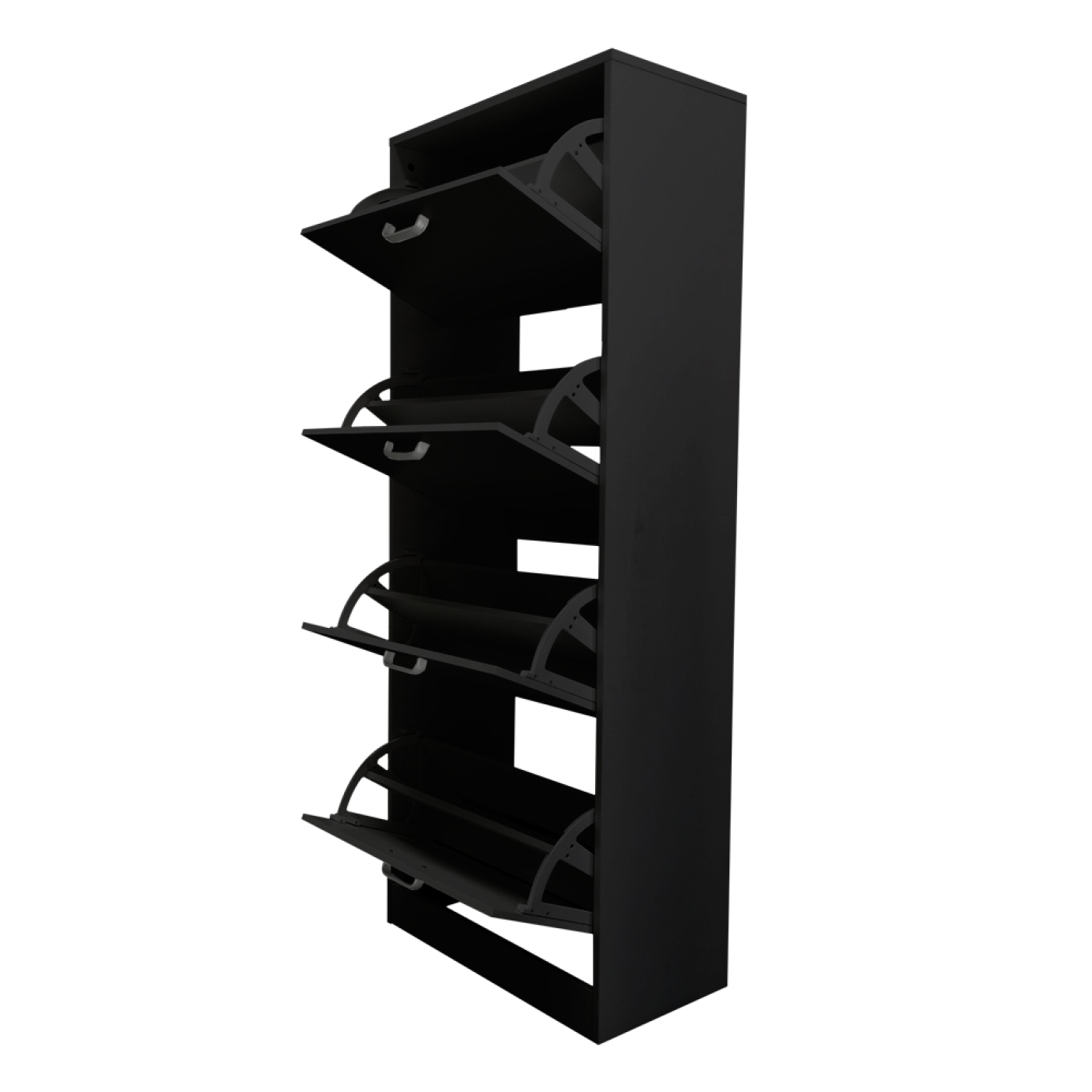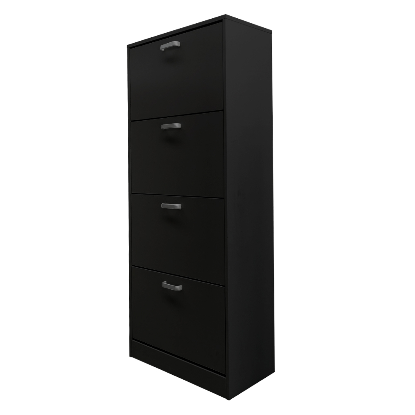 Schoenenkast – schoenenrek – 4 vakken met klepdeuren – zwart