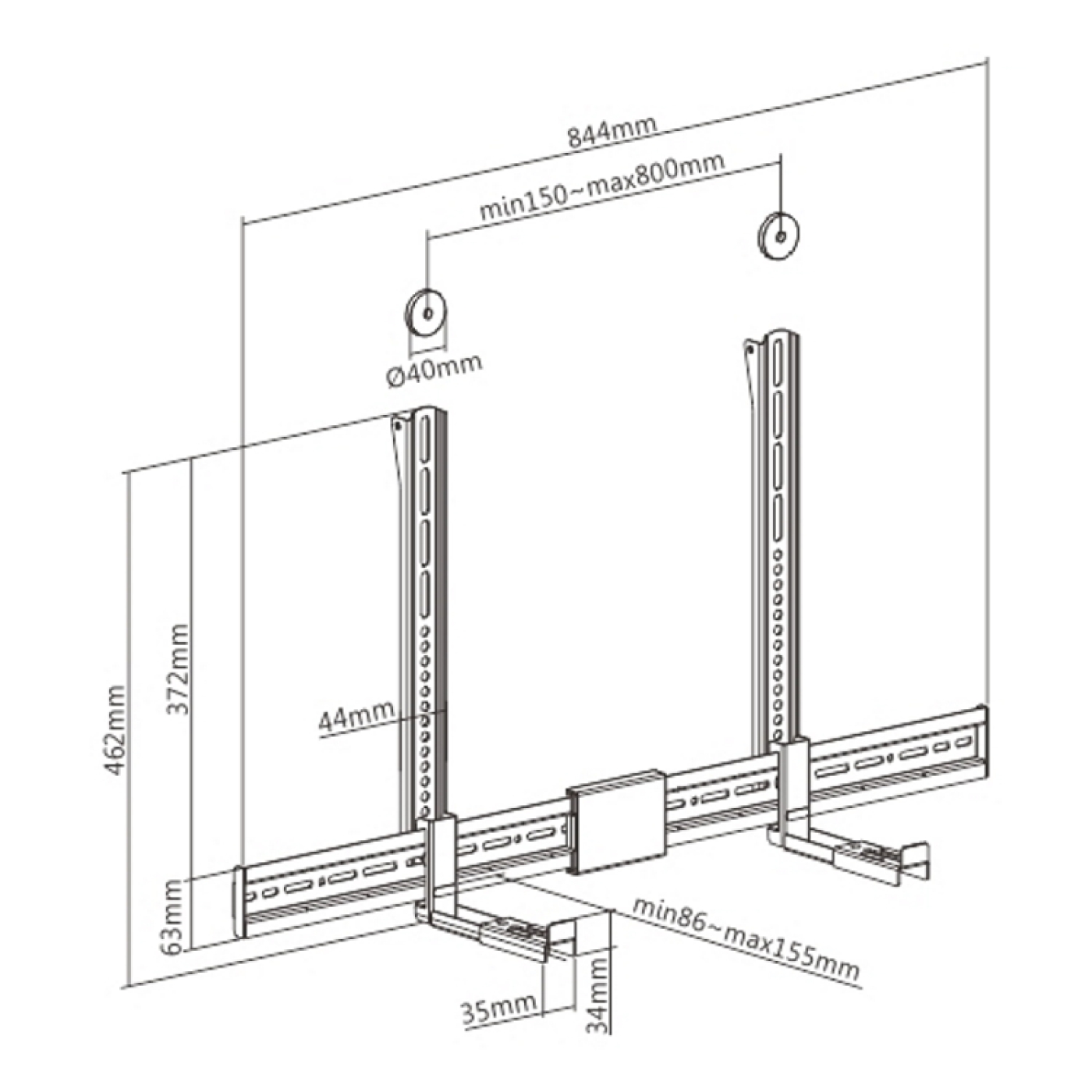 • Soundbar diepte: 86–155 mm