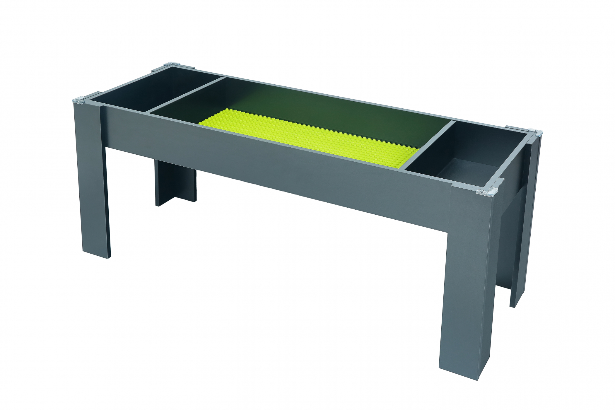 Een praktische en functionele bouwtafel speeltafel geschikt voor Duplo bouwblokken met voldoende ruimte voor het opbergen van de bouwsteentjes. Deze tafel zal worden geleverd met losse bouwplaten die compatibel zijn met Duplo bouwstenen. Deze bouwplaten kunnen naar wens los of vast in de tafel worden gelegd. Deze speeltafel of activiteiten tafel kan ook worden gebruikt voor andere bouw activiteiten zoals blokken of een treinbaan. Een mooie en praktische speeltafel bouwtafel die zal bijdrage aan een opgeruimde speelkamer slaapkamer of woonkamer en ook nog eens urenlang speelplezier garandeerd. Afmetingen: 126 cm breed x 44.5 cm diep x 51 cm hoog tot bovenkant opstaande rand. Levering in bouwpakket met alle benodigde onderdelen en montage instructie.