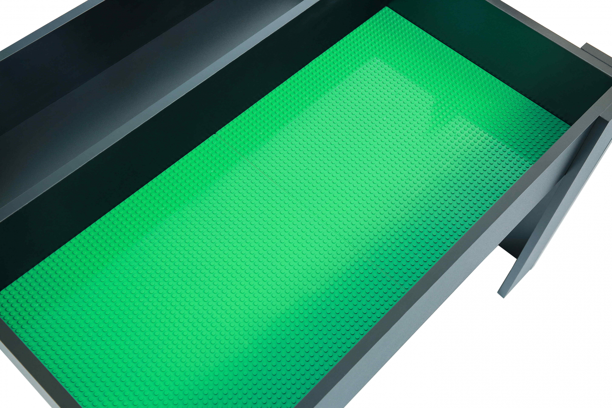 Een praktische en functionele bouwtafel speeltafel geschikt voor Lego bouwblokken met zowel rechts als links voldoende ruimte voor het opbergen van de bouwsteentjes. Deze tafel zal worden geleverd met 2 losse bouwplaten die compatibel zijn met Lego bouwstenen. Deze bouwplaten kunnen naar wens los of vast in de tafel worden gelegd. Deze speeltafel of activiteiten tafel kan ook worden gebruikt voor andere bouw activiteiten zoals blokken of een treinbaan. Een mooie en praktische speeltafel bouwtafel die zal bijdrage aan een opgeruimde speelkamer slaapkamer of woonkamer en ook nog eens urenlang speelplezier garandeerd. Afmetingen: 83 cm breed x 66 cm diep x 51 cm hoog tot bovenkant opstaande rand. Levering in bouwpakket met alle benodigde onderdelen en montage instructie.