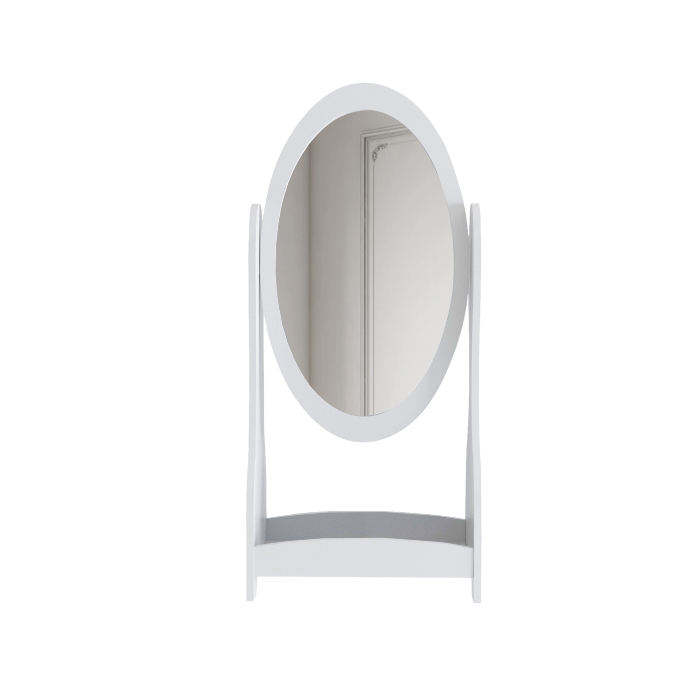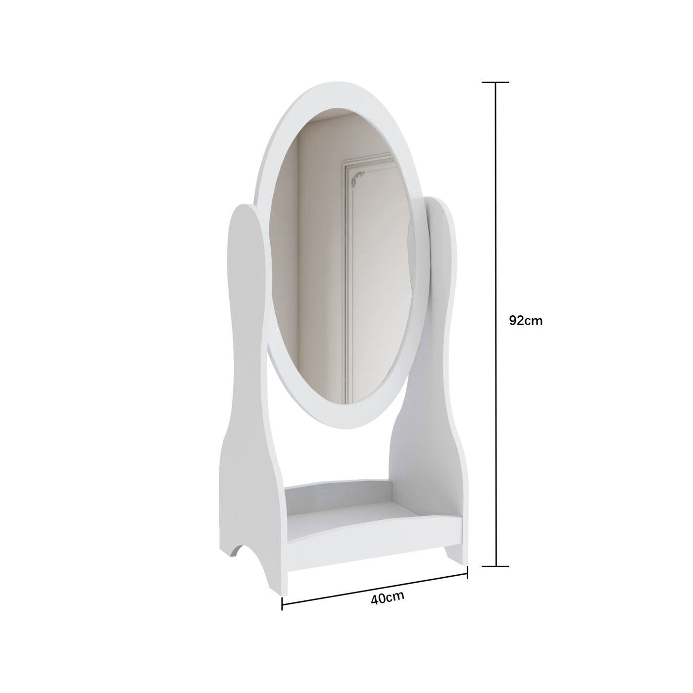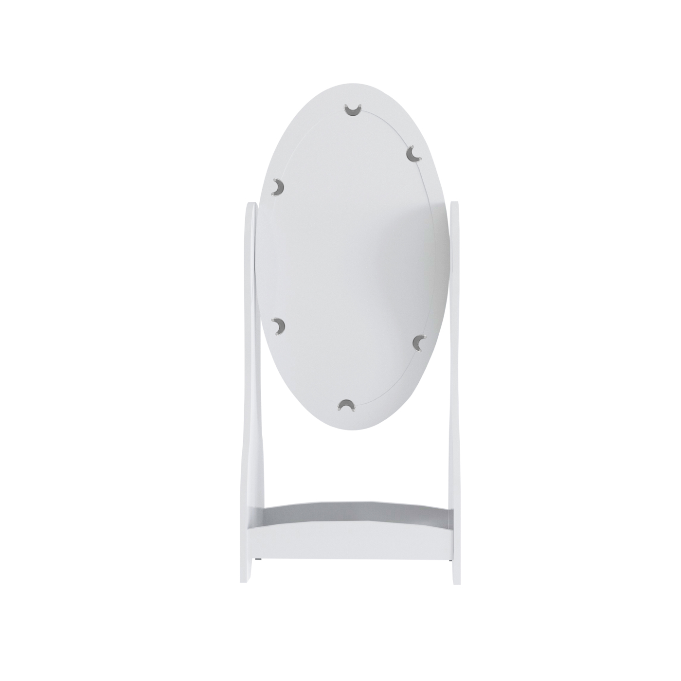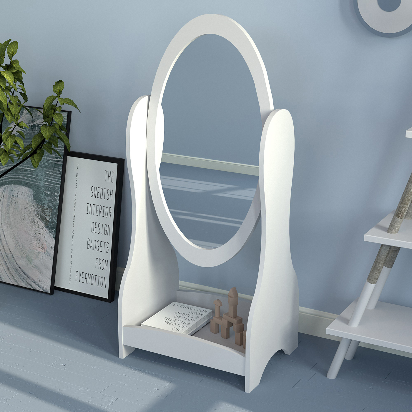 Deze staande witte kinderspiegel combineert een stijlvol design met praktisch gebruiksgemak. Ze biedt kinderen eindeloos plezier bij het spelen en verkleden en is dankzij de stevige constructie en elegante afwerking een waardevolle toevoeging aan elke meisjeskamer.