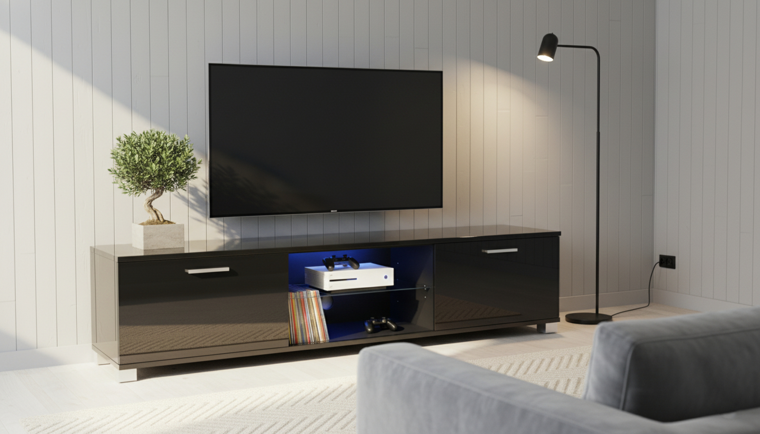 TV meubel – dressoir – led verlichting – 140 cm breed – zwart