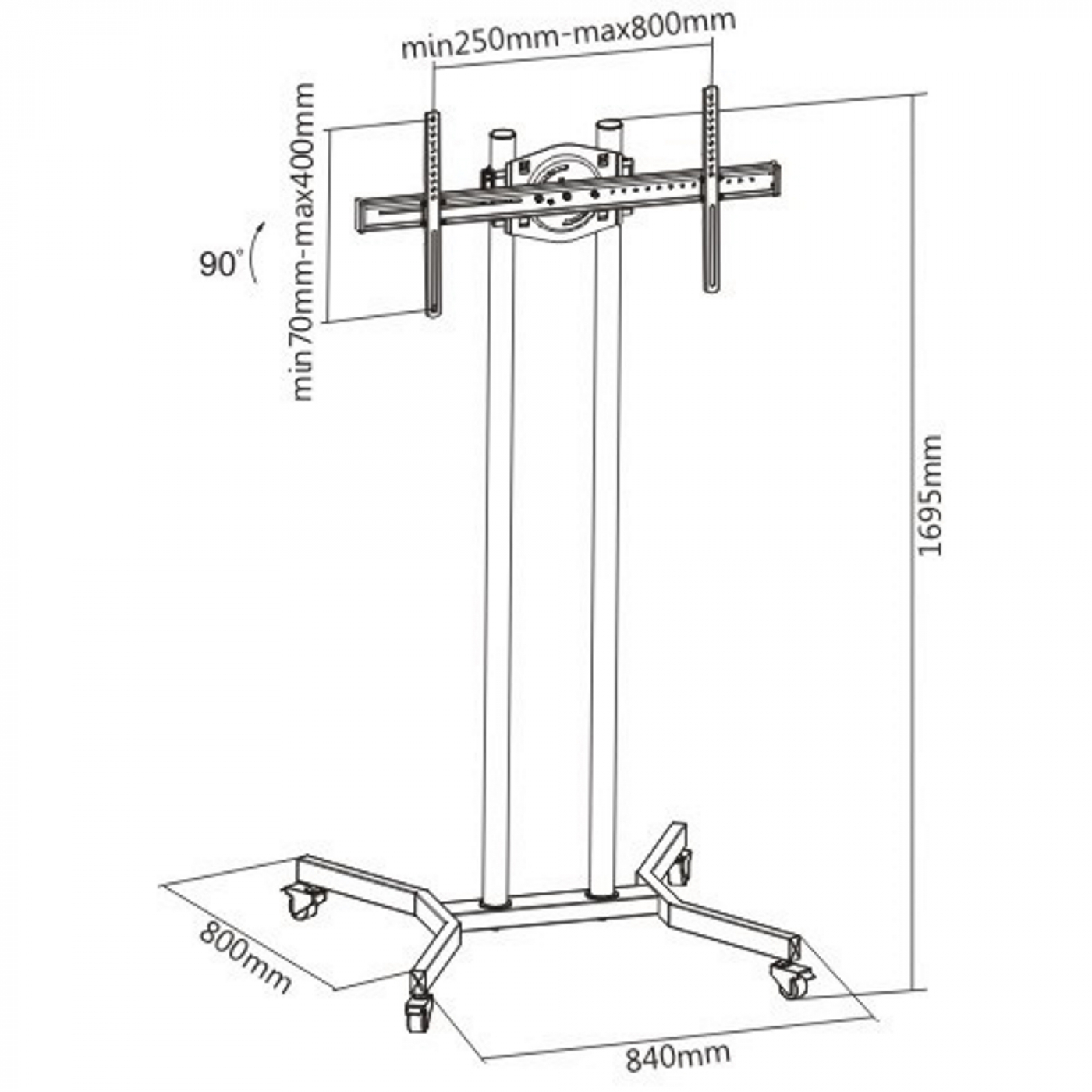 Een praktische en zeer stevige verrijdbare tv beeldscherm standaard met de mogelijkheid voor zowel portrait als landscape weergave. Uitermate geschikt voor commercieel gebruik als tv beurs statief in kantoren scholen hotels luchthavens restaurants conferentie zalen lobby’s en ontvangstruimtes. Geschikt voor tv beeldschermen van 37 inch tot 70 inch met een maximaal gewicht van 40 kg. Hoogte instelbaar tot maximaal bovenkant van de verrijdbare tv standaard. Vier soepel lopende wielen zorgen voor makkelijke en snelle verplaatsing van dit verrijdbare tv statief. Vesa compatabel met 300×300 400×200 400×400 600×400 800×400. Levering inclusief montage instructie en benodigde montage materialen.