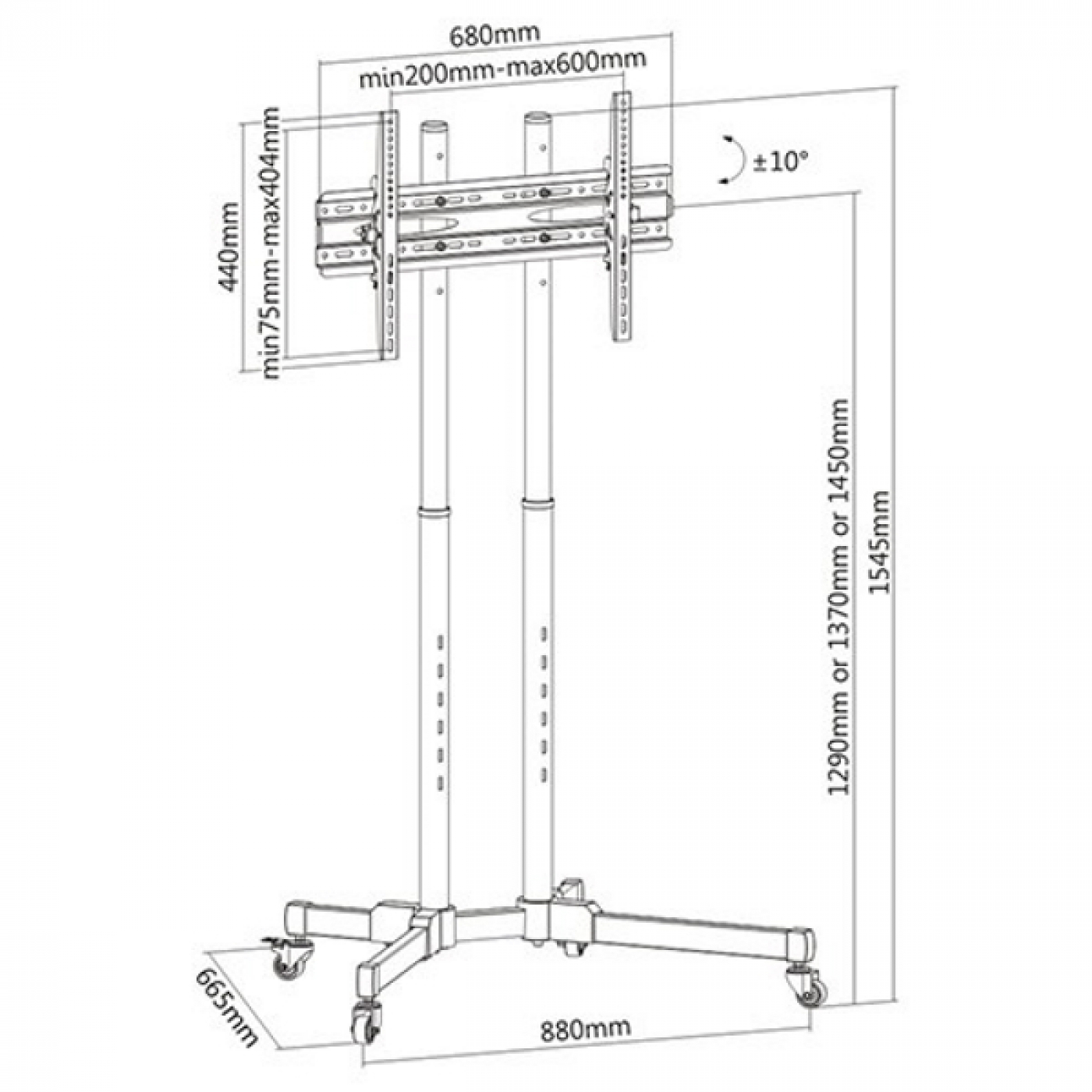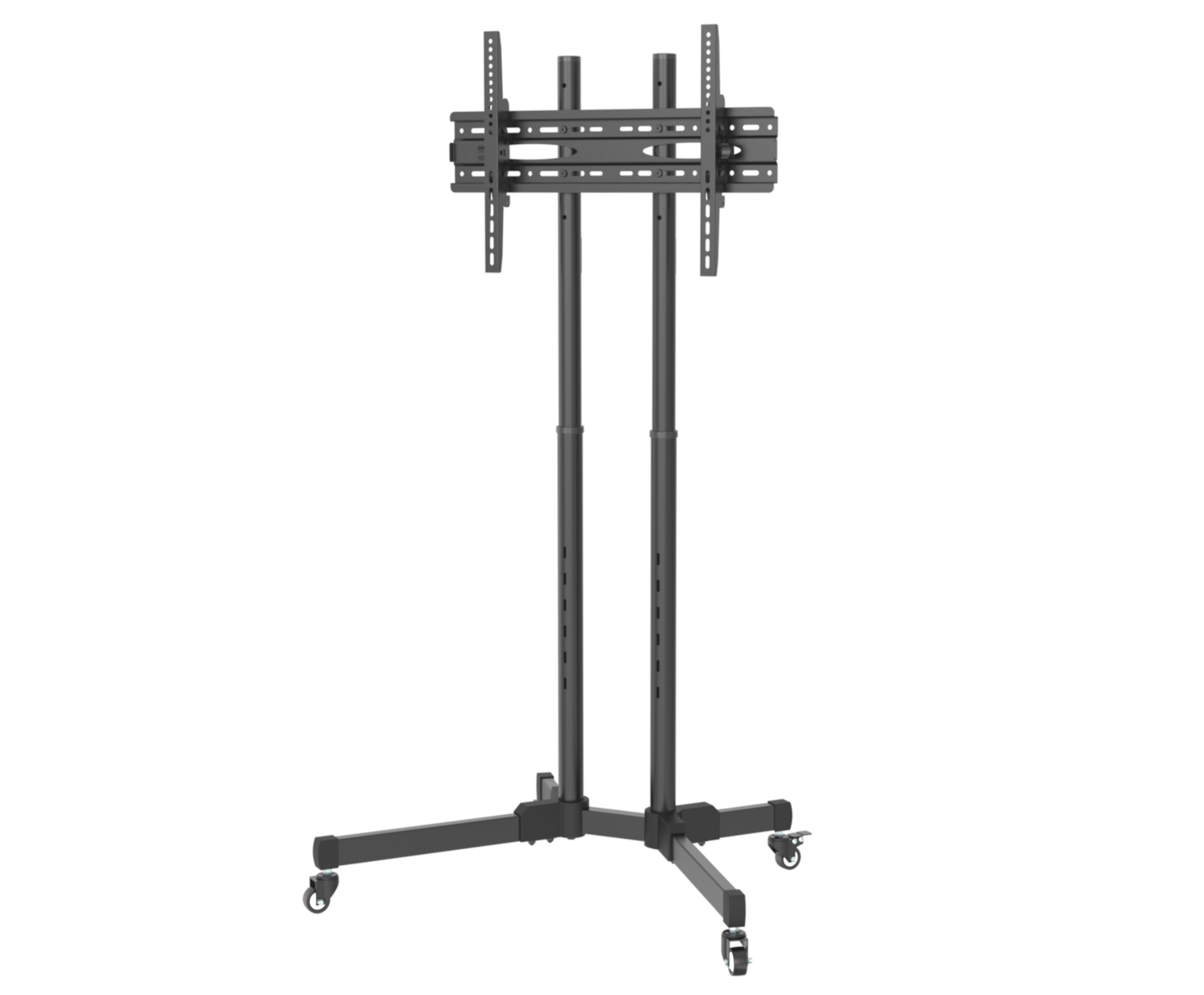 Een verrijdbare tv monitor standaard. Uitermate geschikt voor thuis gebruik in uw woning maar zeker ook voor commercieel gebruik als monitor beurs statief in kantoren scholen hotels luchthavens restaurants conferentie zalen lobby’s en ontvangstruimtes. Geschikt voor beeldschermen van 37 inch tot 70 inch met een maximaal gewicht van 50 kg. Het beeldscherm kan op elk gewenst moment worden aangepast aan de verschillende kijkbehoeften +10 en -10 graden vrij kantelbaar. Hoogte instelbaar tot maximaal bovenkant van het monitor of televisie scherm van 154.5 cm. Midden beeldscherm hoogte instelbaar in 129 cm – 137 cm – 145 cm. Vier soepel lopende wielen zorgen voor makkelijke en snelle verplaatsing van dit verrijdbare tv monitor statief. Het kabelmanagement zorgt er voor dat de kabels netjes en veilig kunnen worden weggewerkt. Vesa compatibel met 200×200 300×300 400×200 400×400 600×400. Levering inclusief montage instructie en benodigde montage materialen.