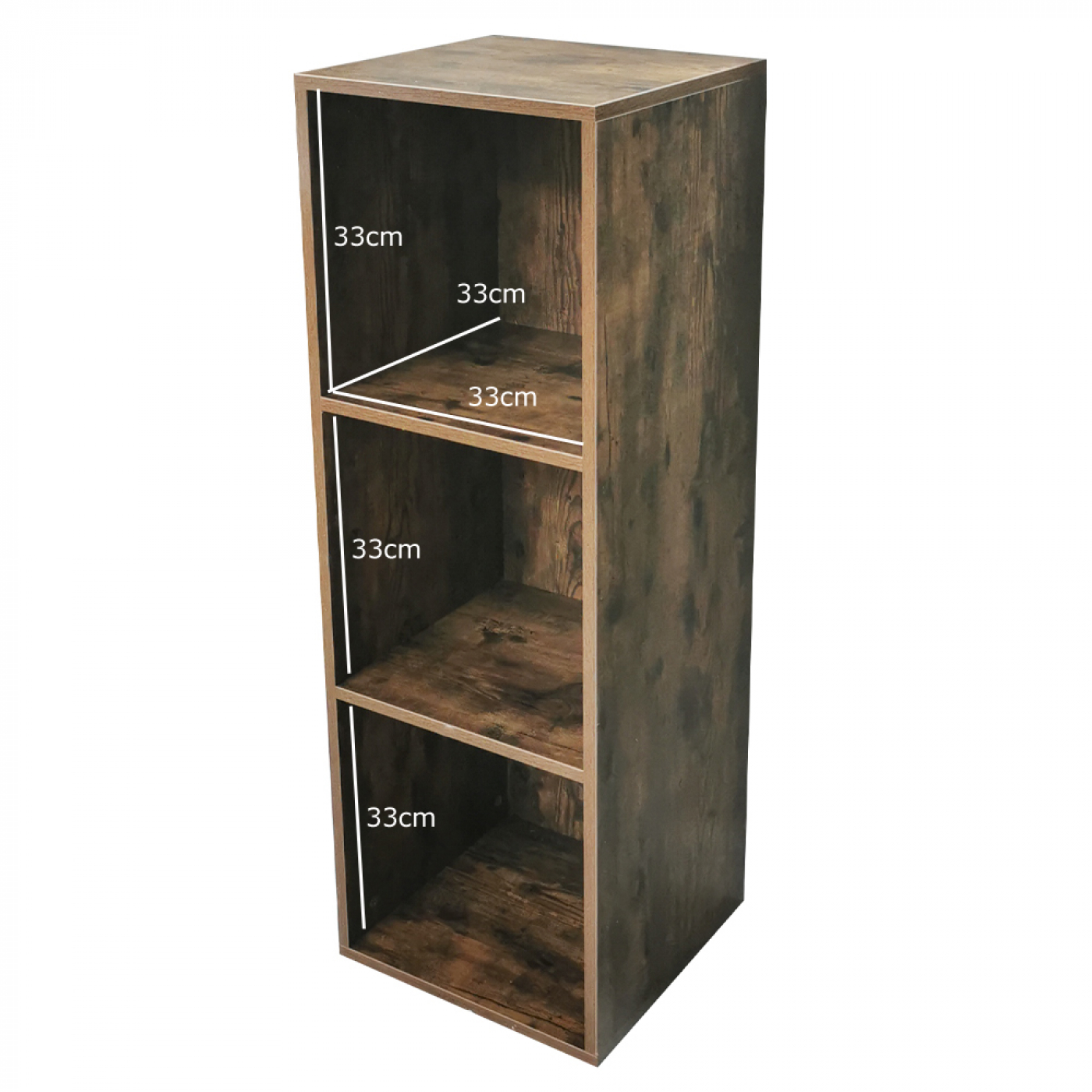 Een stevige en simpele maar multifunctioneel te gebruiken houten donkerbruine walnoot look kast met 3 open vakken voor het opbergen en tonen van bijvoorbeeld verzamelingen boeken tijdschriften of ordners maar ook andere items en woonaccessoires. Deze wandkast open vakkenkast archiefkast heeft houten legplanken waardoor er 3 vakken ontstaan. Deze opbergkast is natuurlijk ook universeel te gebruiken in uw kantoor werkkamer slaapkamer of woonkamer. De levering is in delen incl. montagehandleiding en montagemateriaal. Buiten afmetingen van dit meubel zijn: hoogte 105 cm x breed 33 cm x diepte 34,5 cm. Kleur: donkerbruin walnoot structuur look. Ook verkrijgbaar in andere kleuren en afmetingen, zie andere advertenties.