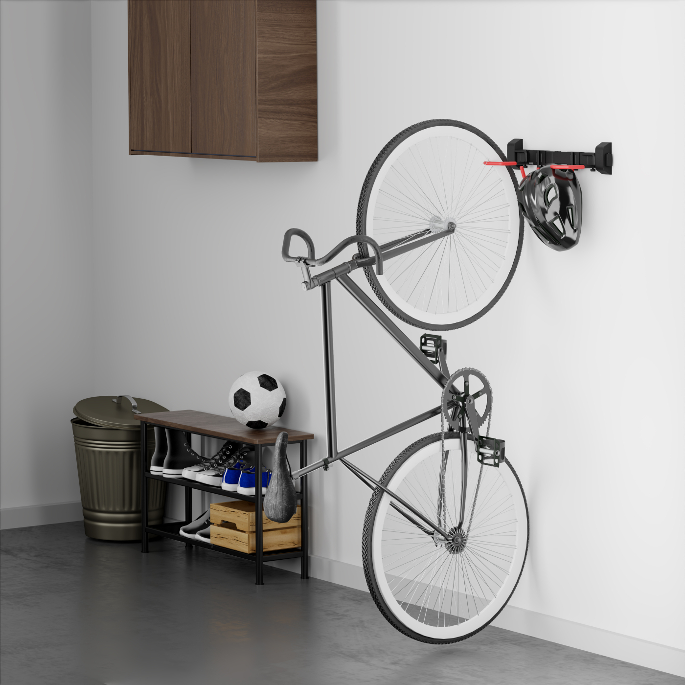 Ontdek de Catch-All, een veelzijdige wandgemonteerde fietsophangrek, ideaal voor het opbergen van meerdere familiefietsen. Voorzien van 2 fietshaken met robuuste beschermcoating ter behoud van de velgen en 2 haken voor helmen, biedt dit rek plaats aan maximaal 25 kg voor fietsen en 10 kg voor helmen. Dankzij het laterale schuifsysteem kun je diverse fietsformaten moeiteloos plaatsen, terwijl de tool-free bevestigingsknop zorgt voor een eenvoudige en veilige montage.