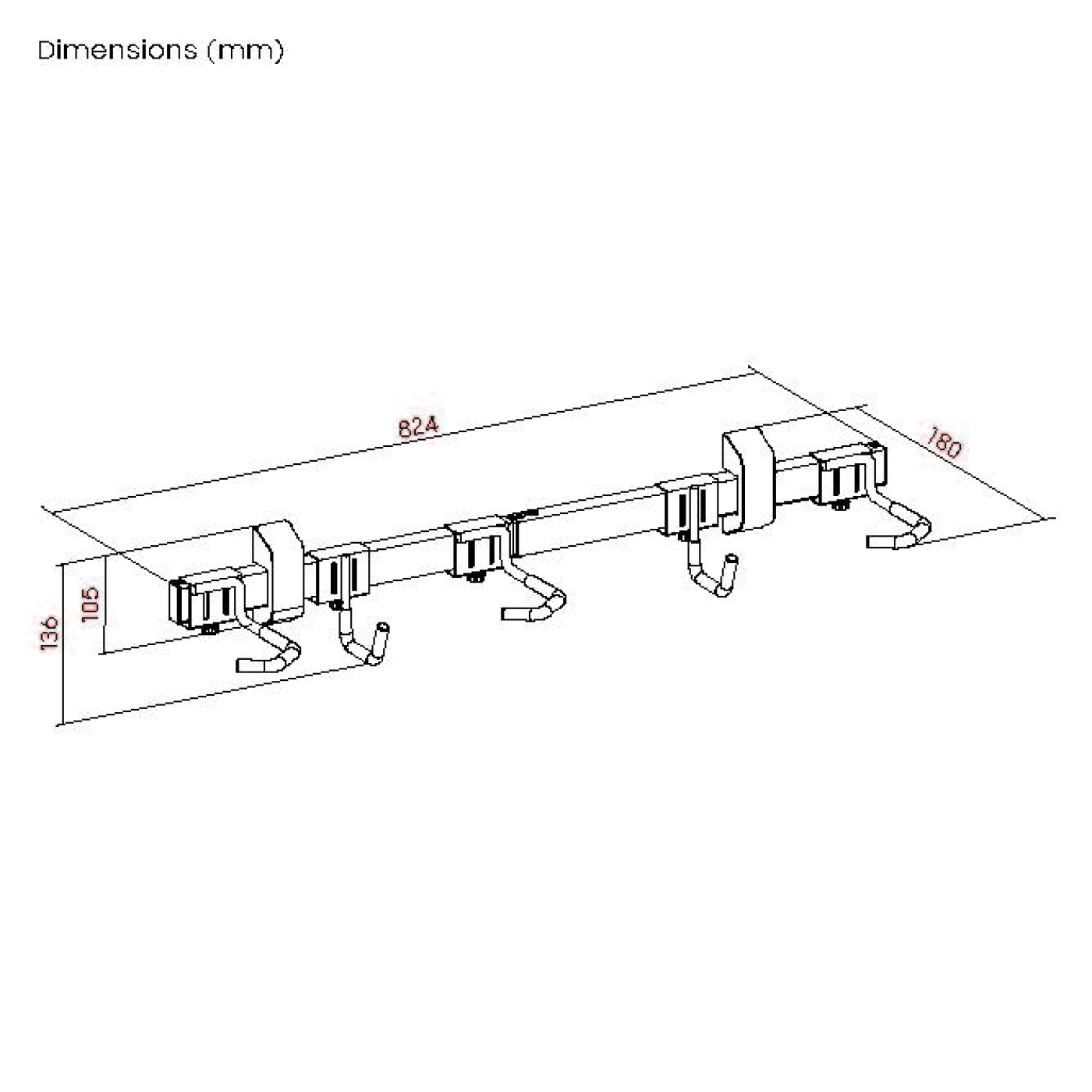 • Flexibele opstelling: Het laterale schuifmechanisme maakt het mogelijk om verschillende fietsformaten op te hangen.