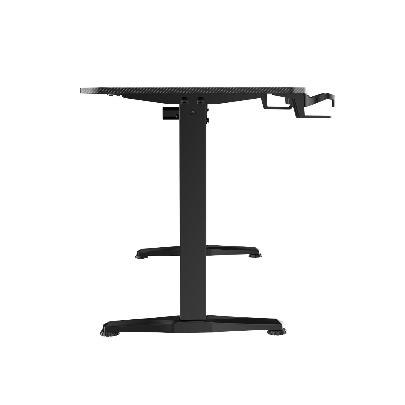 Het tafelblad heeft een stijlvolle carbon-look zwart oppervlak en is samengesteld uit twee delen. De bijgeleverde muismat bedekt de overgang volledig, waardoor je geen last hebt van de naad. Dankzij het ruime bureaublad van 160 cm breed, 75 cm diep aan de rechterzijde en 60 cm aan de linkerzijde, heb je meer dan genoeg ruimte voor al je accessoires en beeldschermen.