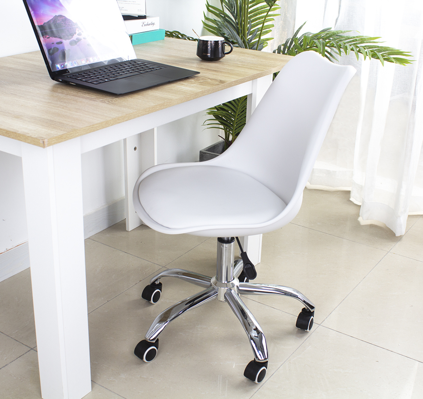 Functionele en praktische witte bureaustoel met ergonomisch ontwerp