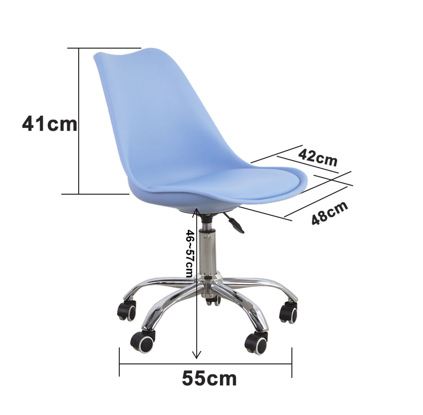 Deze functionele bureaustoel biedt comfortabel zitten dankzij de ergonomisch vormgegeven kuip met kussentje. De in hoogte verstelbare zitting maakt het eenvoudig om de juiste werkhouding te vinden, terwijl het stevige vijfster-onderstel met zwenkwielen de stoel soepel laat rijden op zowel harde als zachte ondergronden. De frisse lichtblauwe kleur geeft elke werkplek een moderne uitstraling.