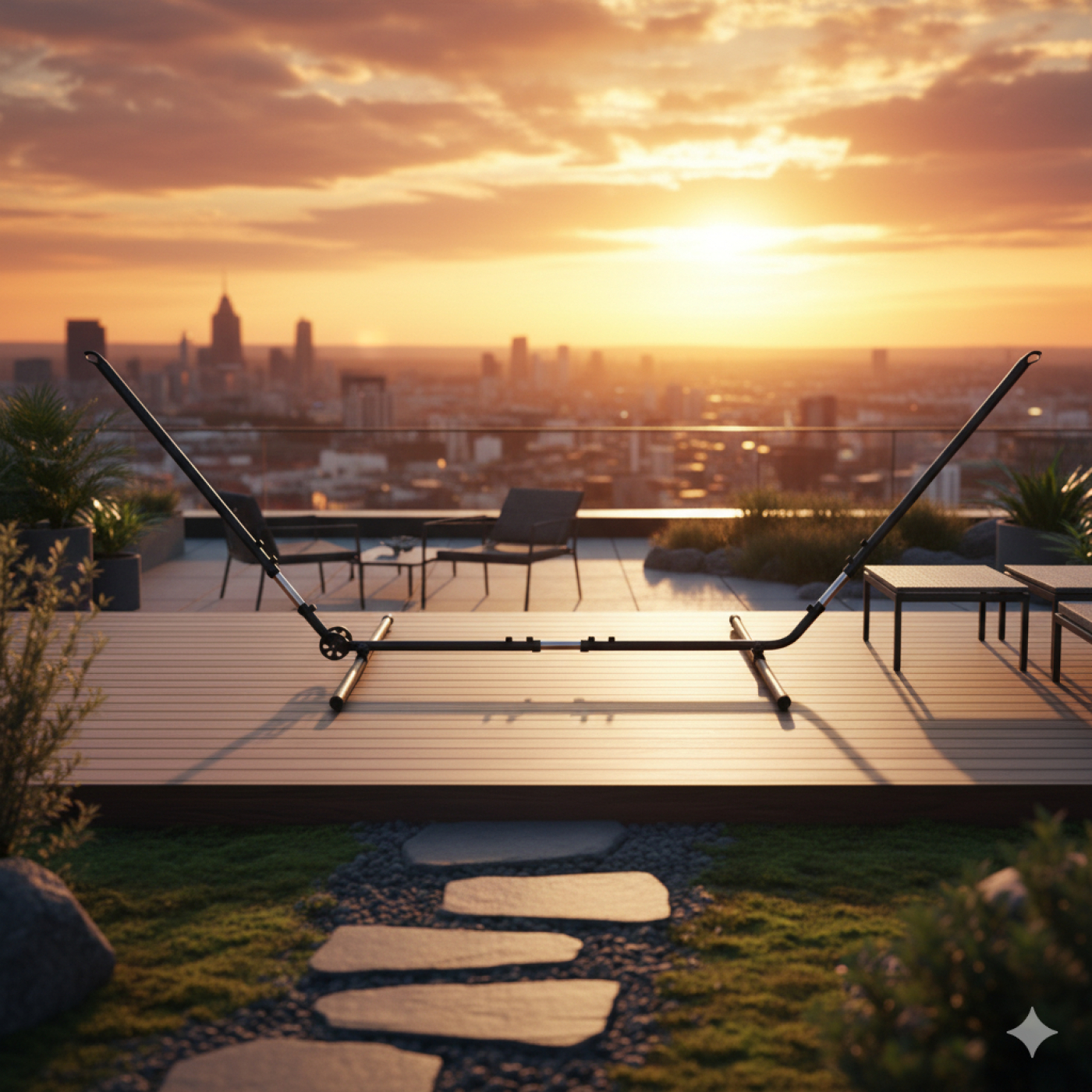 Met deze verstelbare standaard vindt u altijd de ideale hoogte en spanning voor uw hangmat — waar u ook wilt ontspannen.