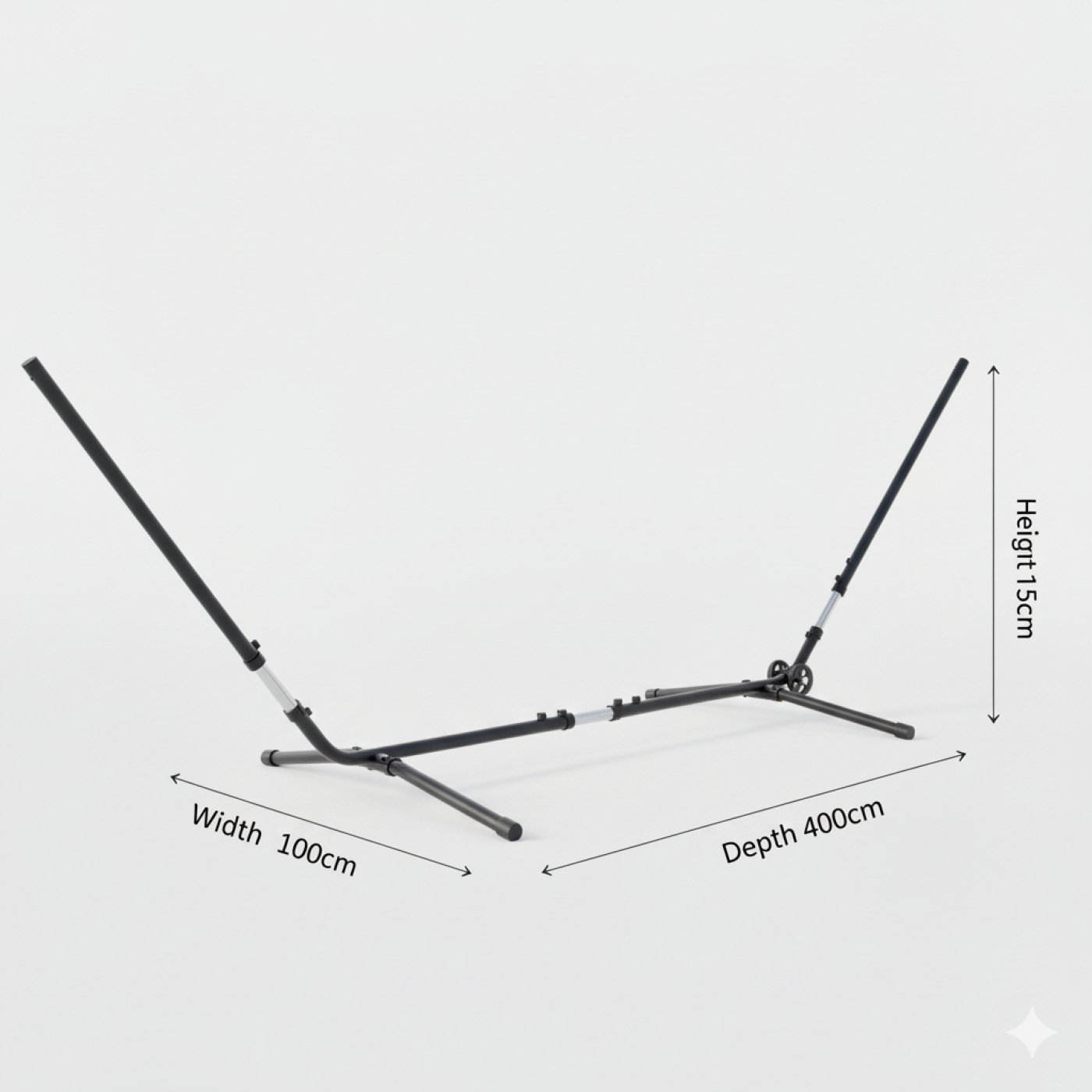 Deze zwarte hangmatstandaard is in zowel lengte als hoogte verstelbaar, zodat u uw hangmat precies op spanning brengt. Ideaal voor tuin, terras of binnenruimte: snel opzetten, comfortabel relaxen.