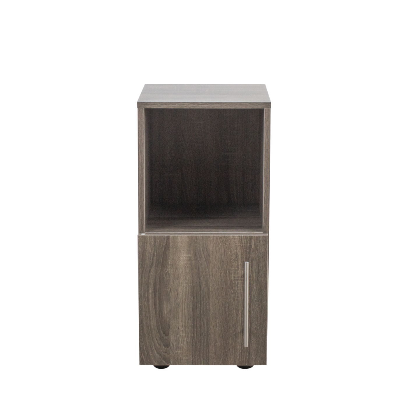 Deze set van twee moderne, grijze nachtkastjes/bijzetkastjes combineert een eenvoudige vormgeving met slimme opbergruimte. Per kastje houdt het open vak bovenin uw essentials binnen handbereik, terwijl de opbergruimte achter de deur onderin losse items netjes uit het zicht bewaart. Ideaal naast beide bedzijden, maar ook geschikt voor hal, woonkamer, badkamer of werkkamer.