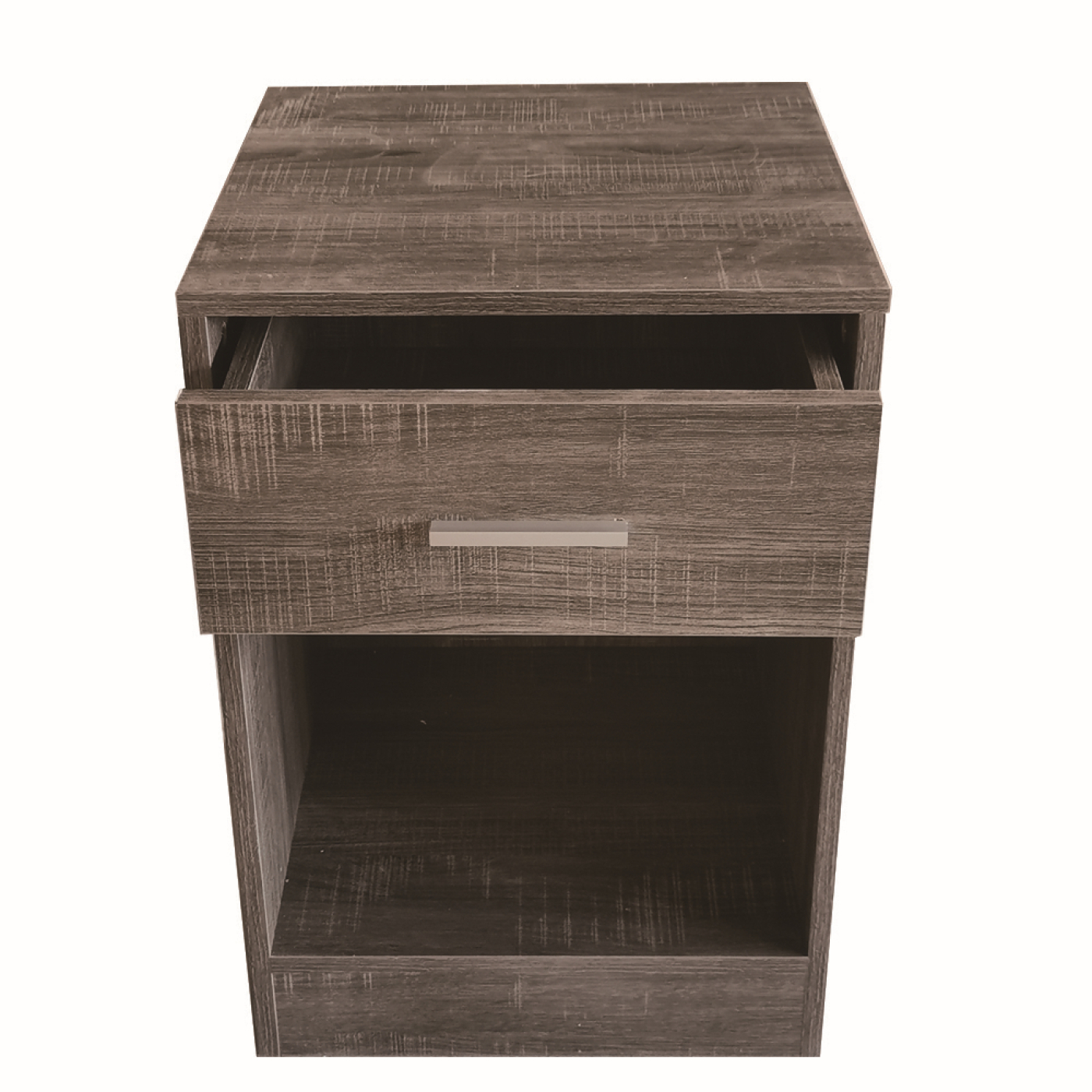 • Praktische indeling: 1 lade + groot open opbergvak per kastje