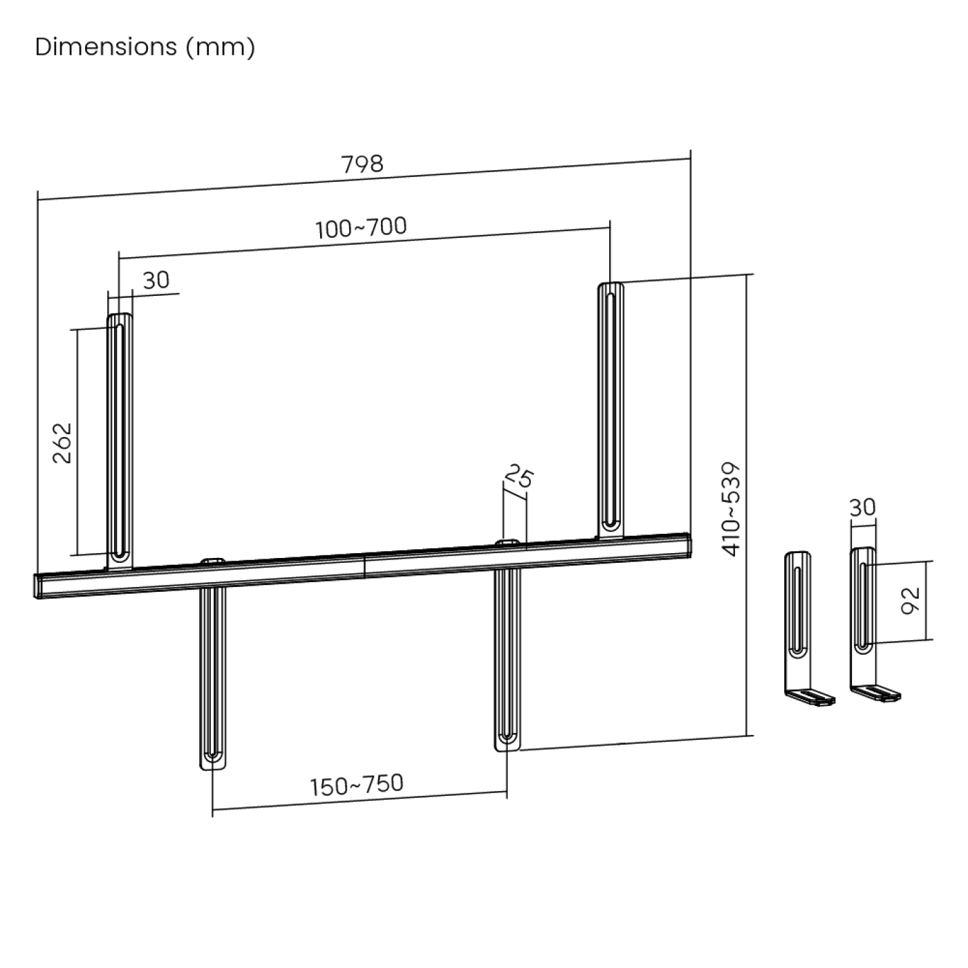 • Verstelbaar ontwerp: passend voor uiteenlopende soundbarbreedtes