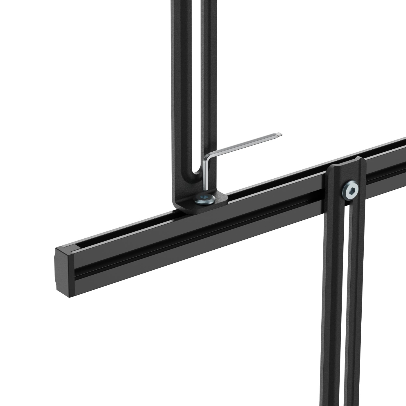 Deze zwarte soundbar beugel monteert u aan uw tv en past zich aan verschillende soundbarformaten aan. Ideaal om soundbar en scherm als één strakke set-up te laten ogen, zonder aparte wandmontage.